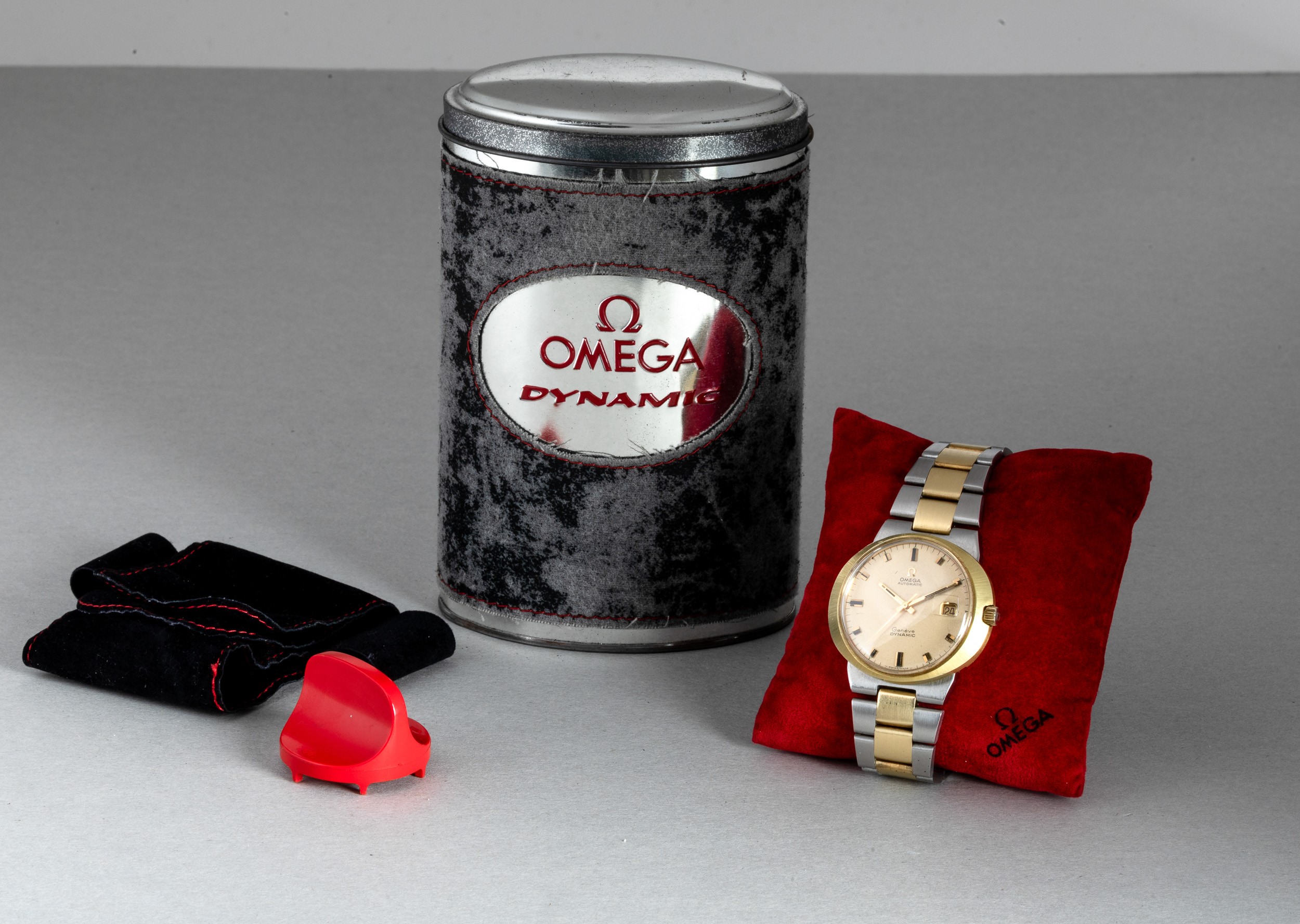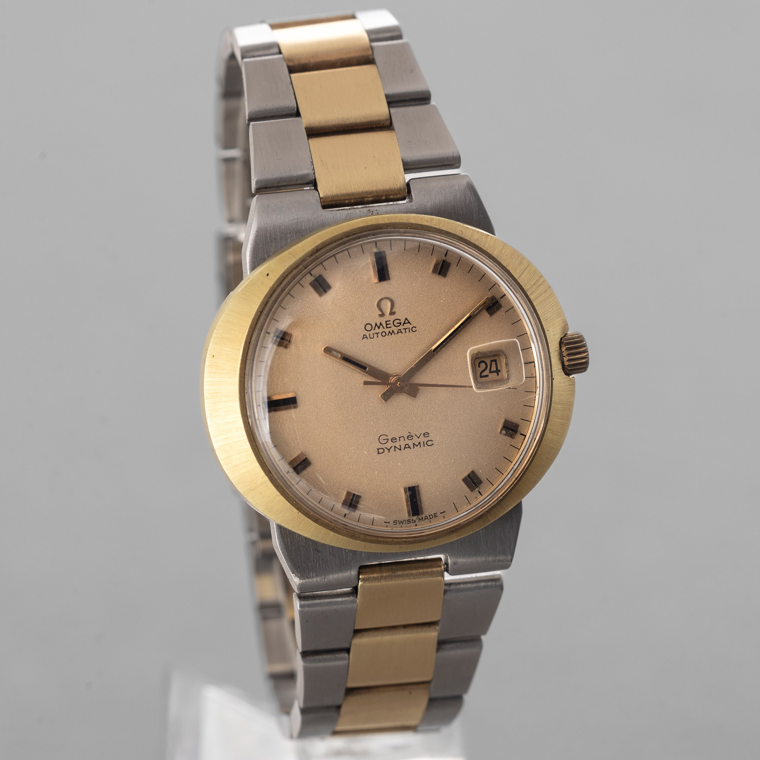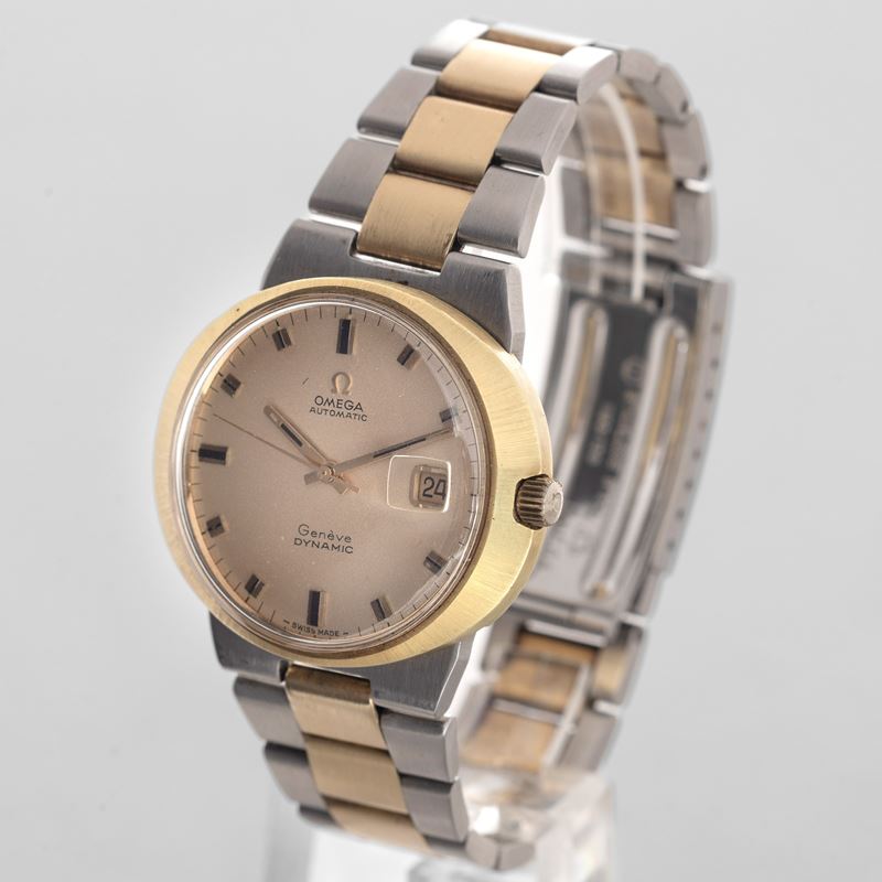 Omega Dynamic in acciaio e oro forma ovale, movimento automatico, quadrante champagne con datario, scatola e garanzia, 40x35,5 mm, 1970 - 1980 circa