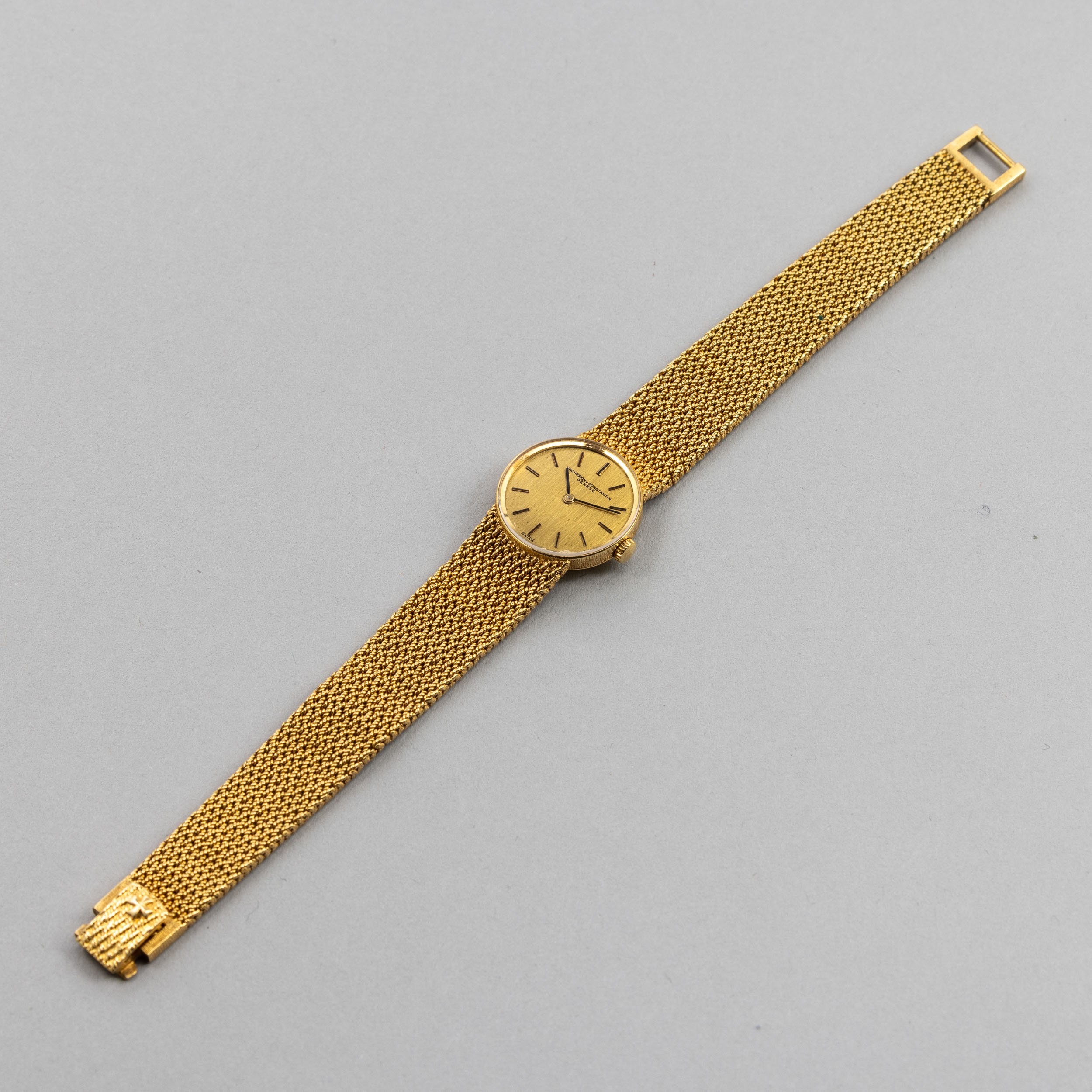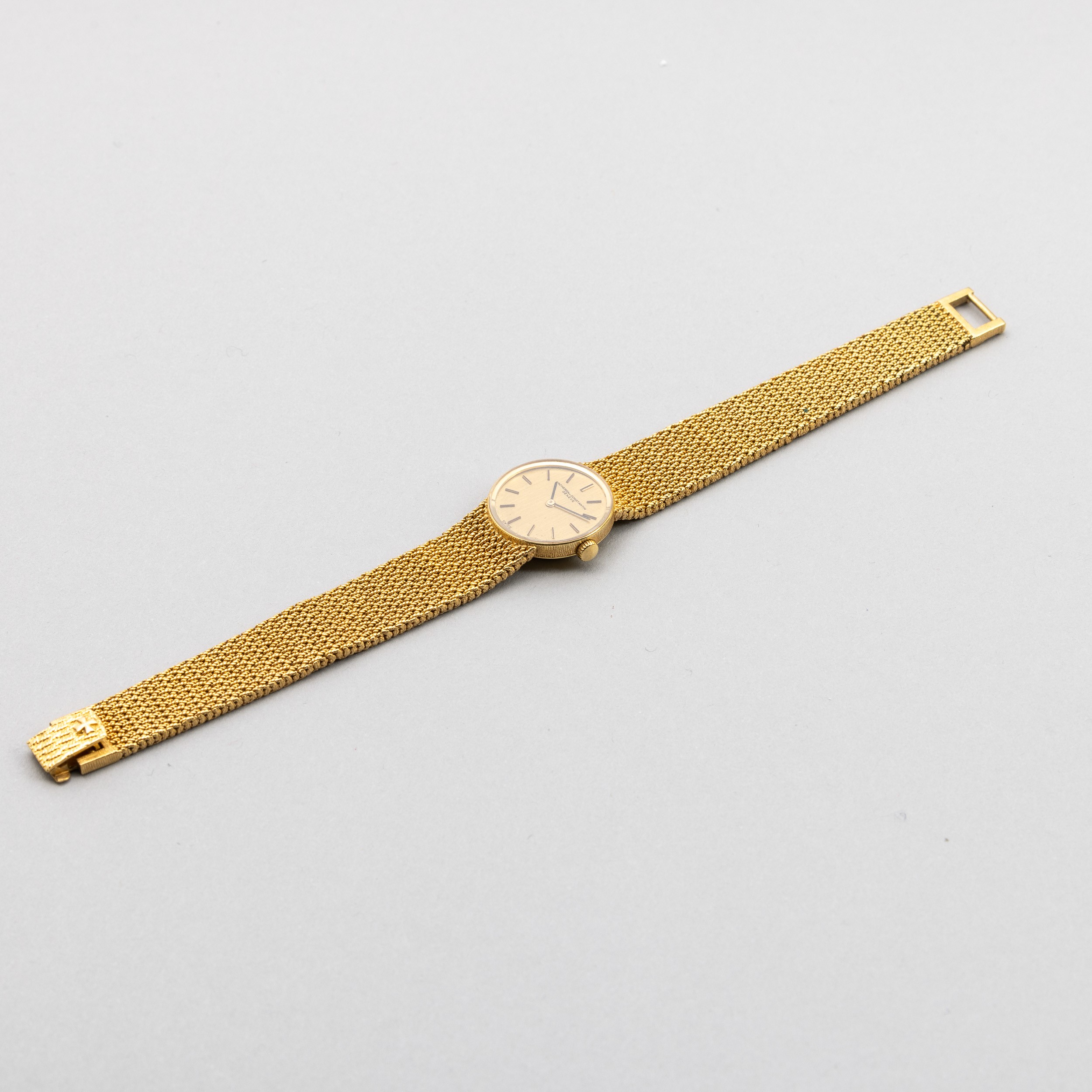 Vacheron & Constantin in oro 18k, quadrante in oro, carica manuale, indici a bastone, bracciale in oro 18k, 19,3 mm, 1980 cica