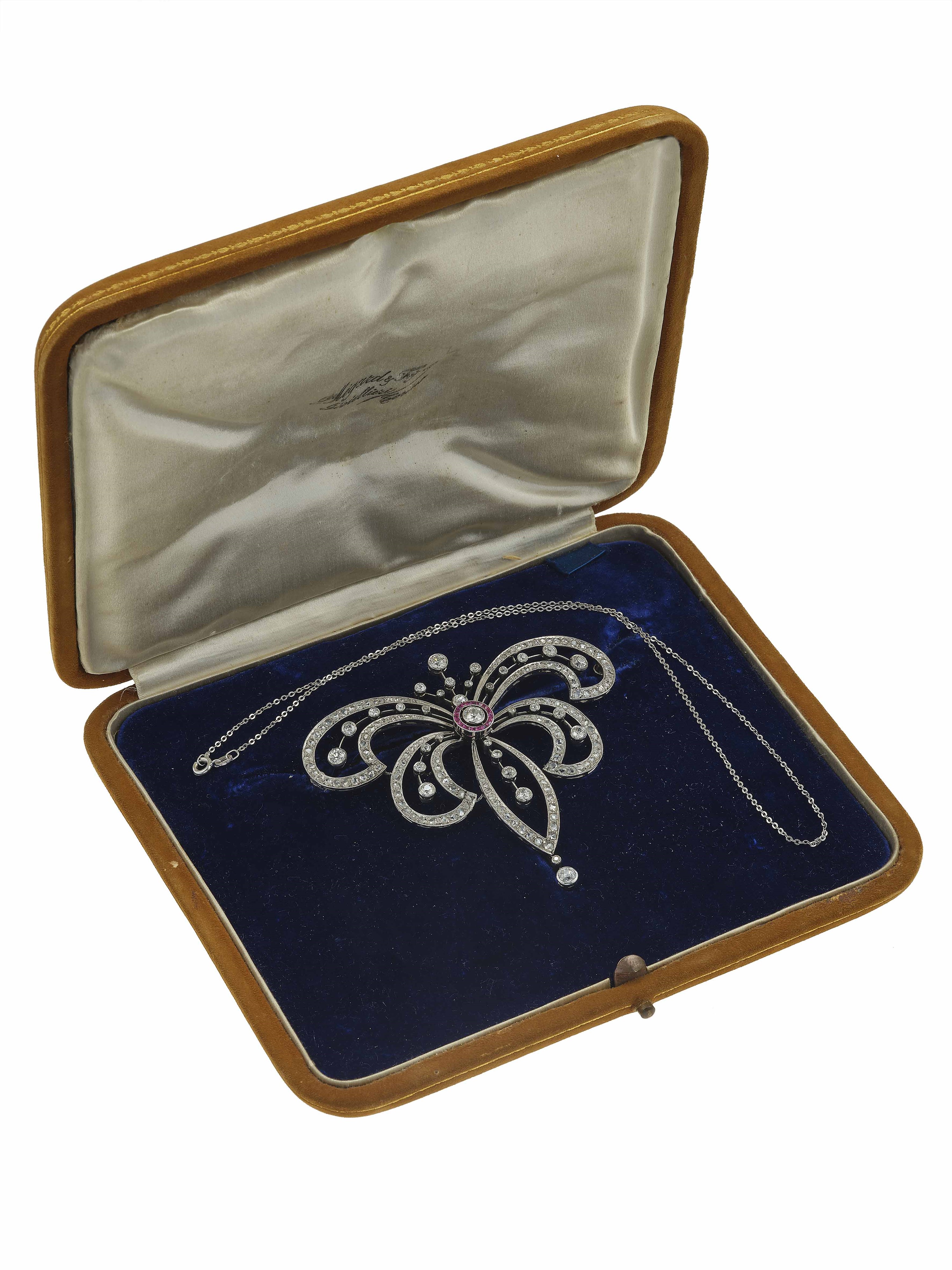 Diamond, ruby, platinum and silver devant de corsage