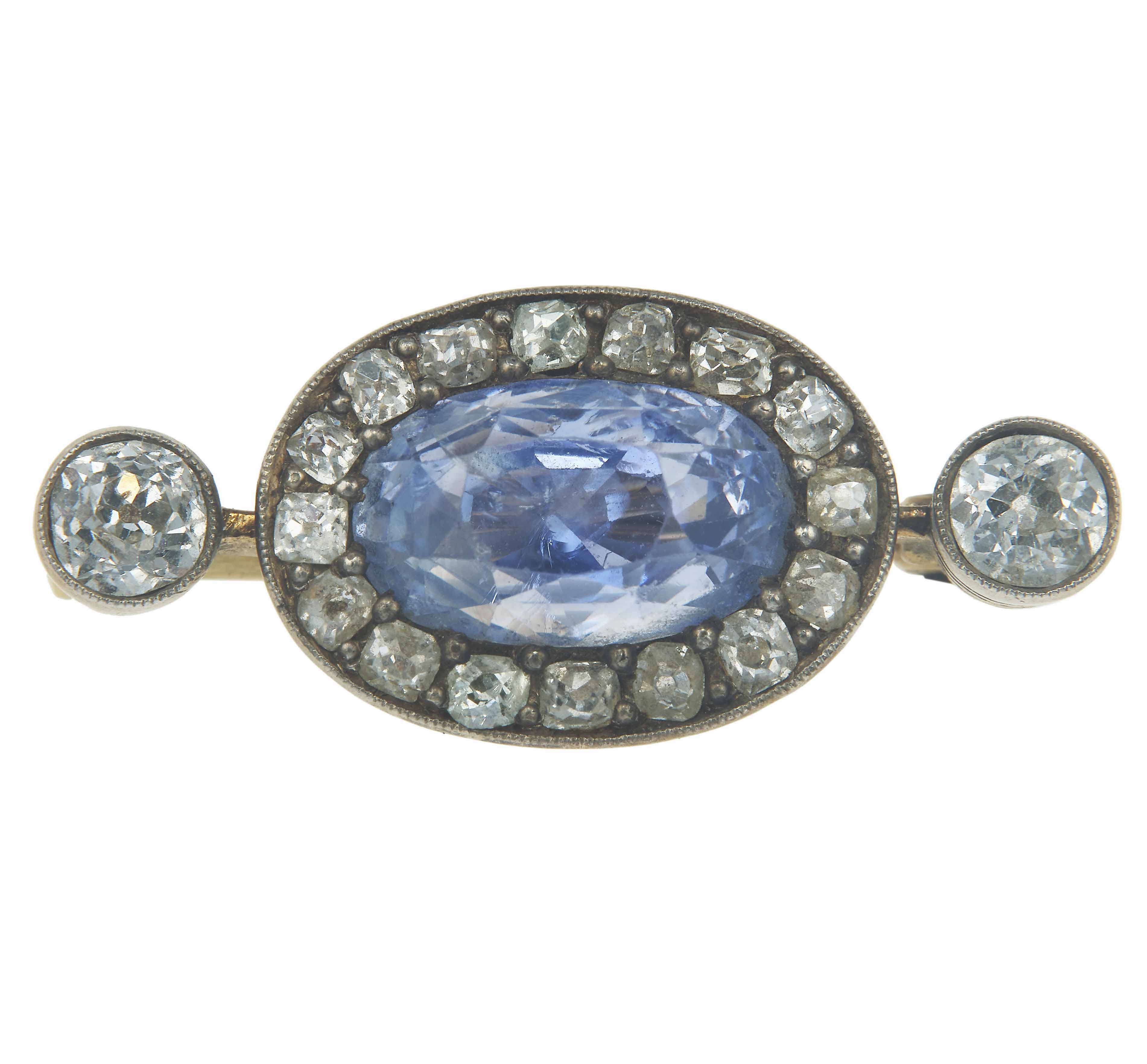Spilla con zaffiro Sri Lanka, nessuna indicazione di trattamenti termico e diamanti