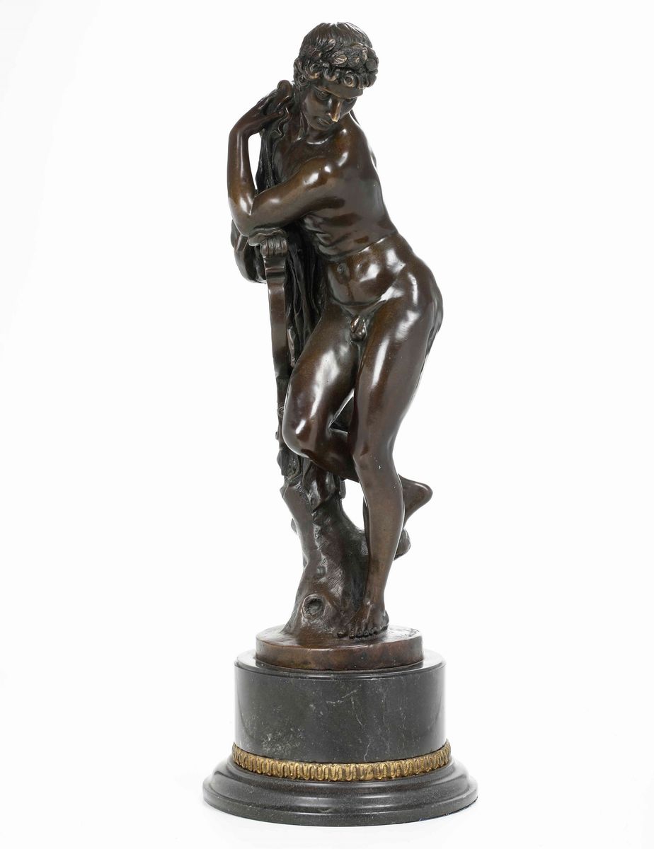 Apollo, da Giambologna. Bronzo patinato su base in marmo nero. XIX-XX secolo