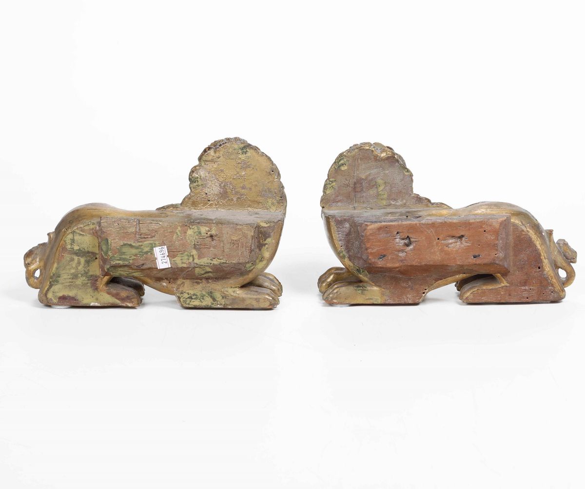 Coppia di antichi leoni in legno scolpito e dorato. Venezia (?) XVIII secolo