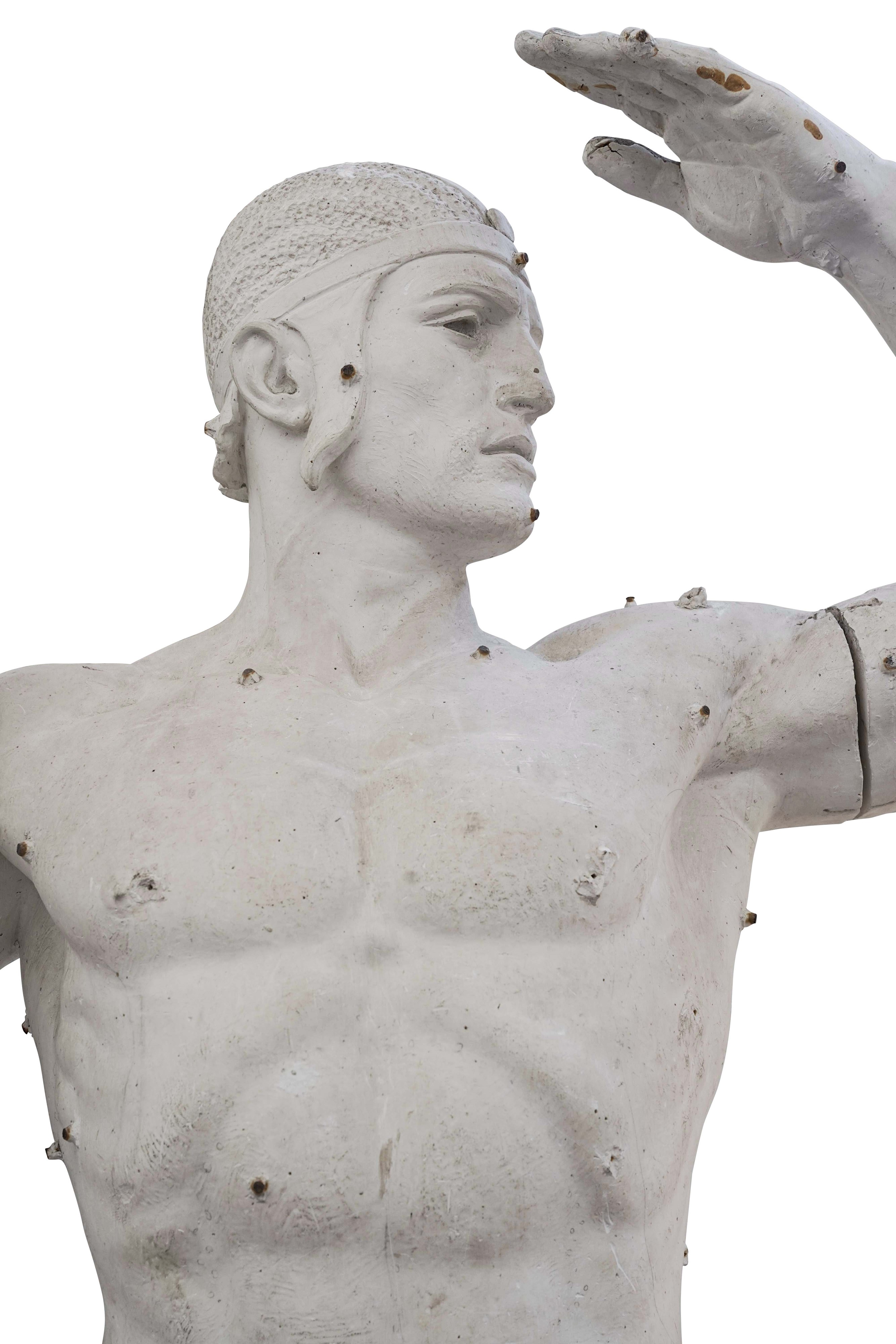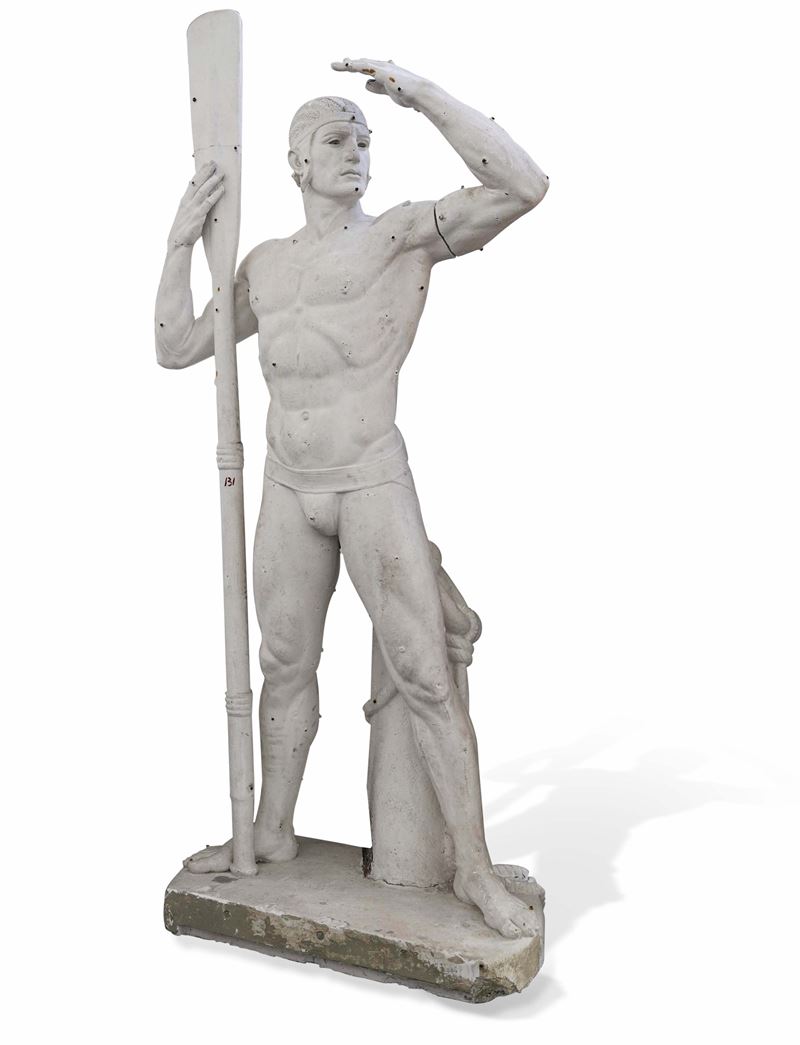 La statua colossale del « Navigatore » (Marina della Foce, Genova), forte e serena raffigurazione dell’uomo ligure di mare: rude, tenace e semplice, che, armato di un pesante remo, scruta l'orizzonte lontano, a guardia ideale del suo porto e della sua città. La prepotente anatomia muscolare del torace e dei bicipiti, delineata e modellata con forza ma senza esagerazioni, è chiaramente allusiva alla potente capacità operativa e manovriera dei pesanti antichi remi lignei. armati di robusto cuoio. (Vitaliano Rocchiero)