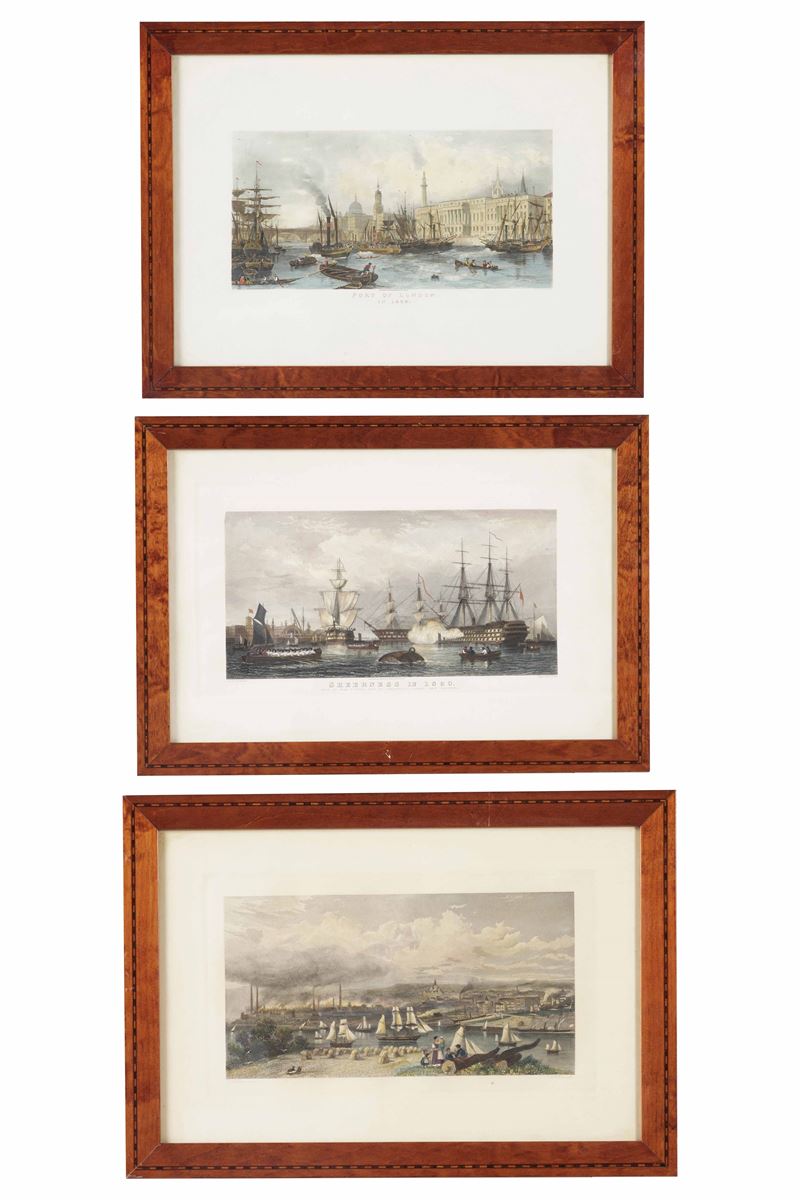 Tre stampe acquerellate. Inghilterra XX secolo
