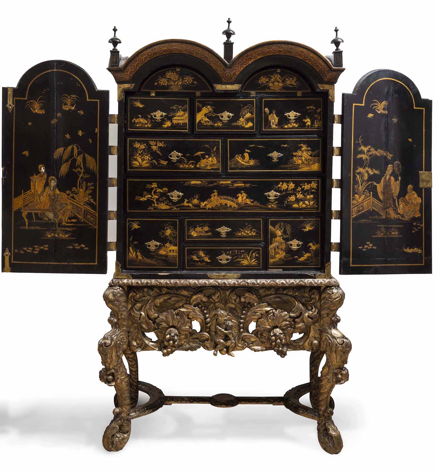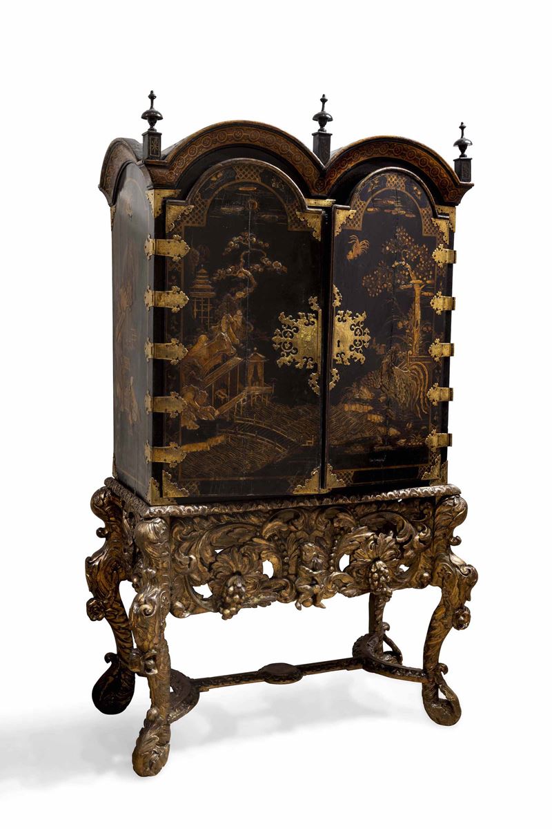 Cabinet in legno ebanizzato e laccato a chinoiseries, Inghilterra XVIII secolo