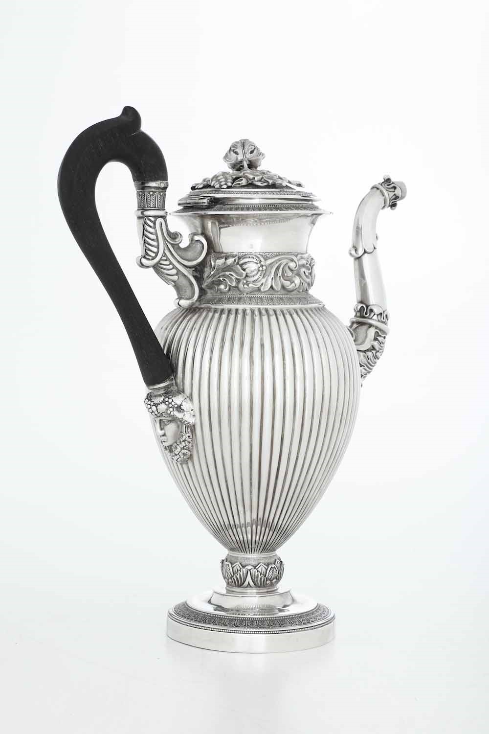 Caffettiera. Argento fuso, sbalzato e cesellato. Torino secondo quarto del XIX secolo. Marchi camerali e di titolo in uso [..]