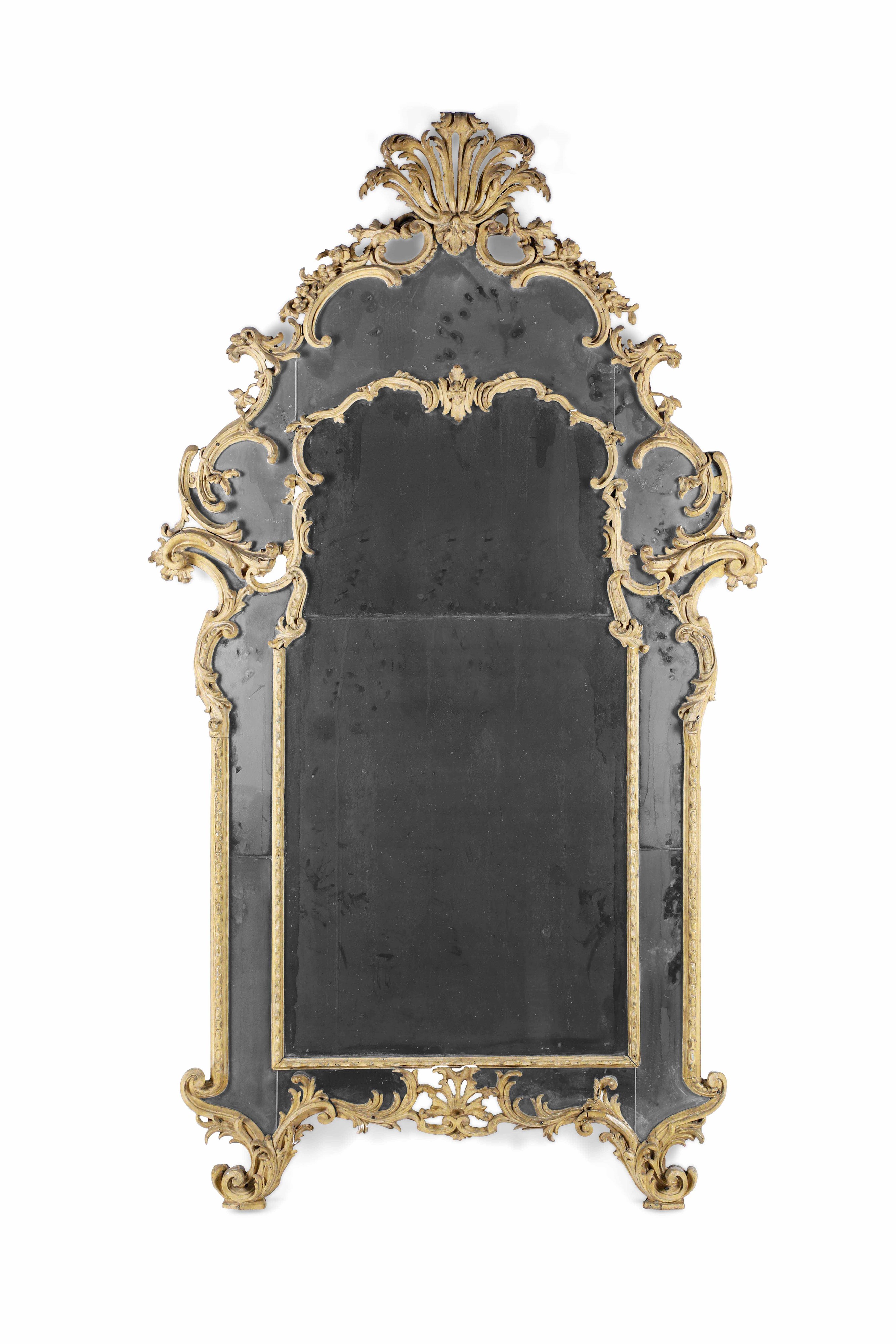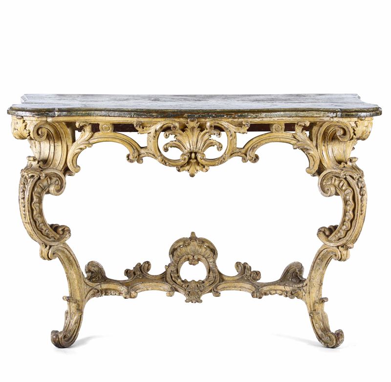 Console con specchiera in legno intagliato e laccato. XVIII secolo