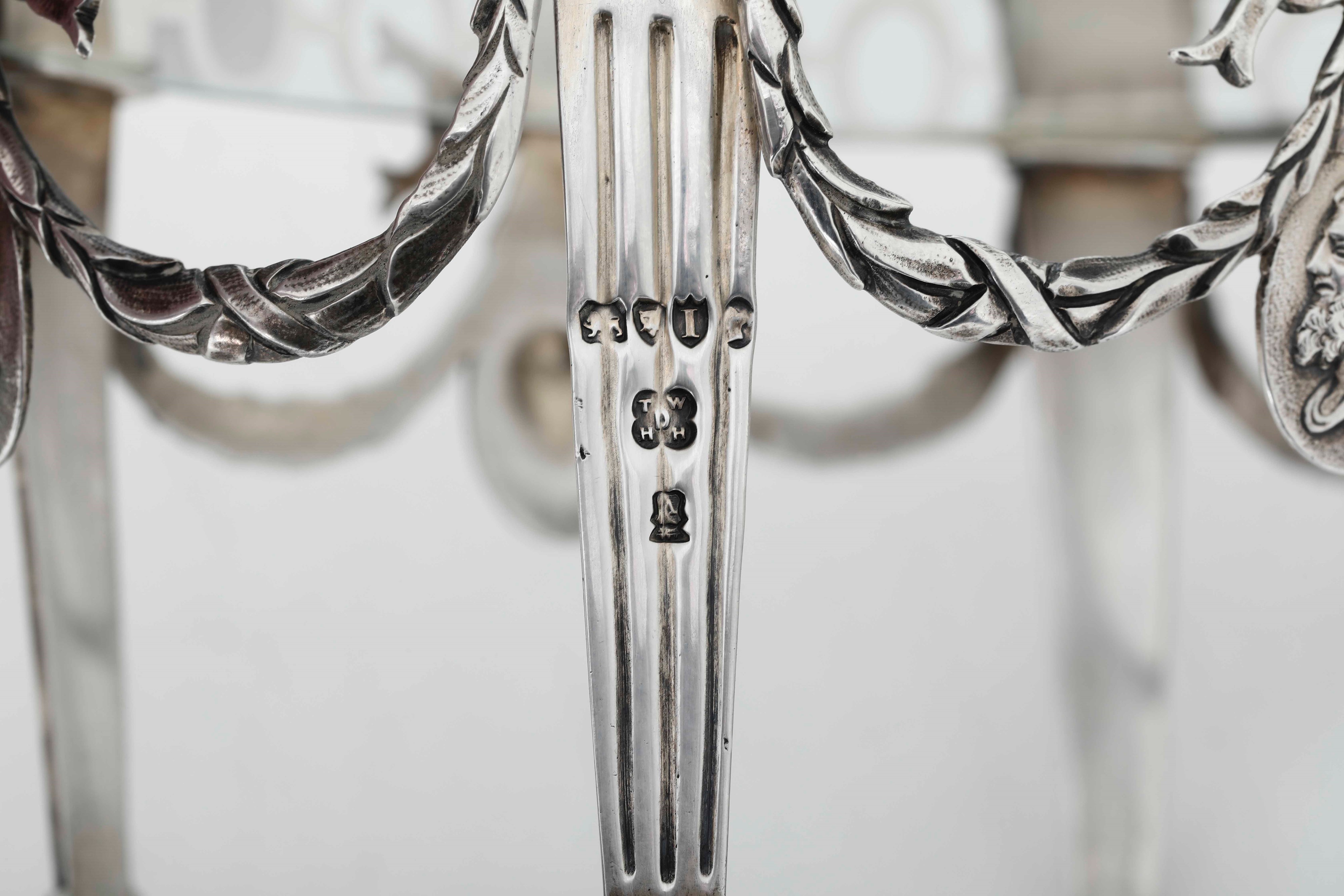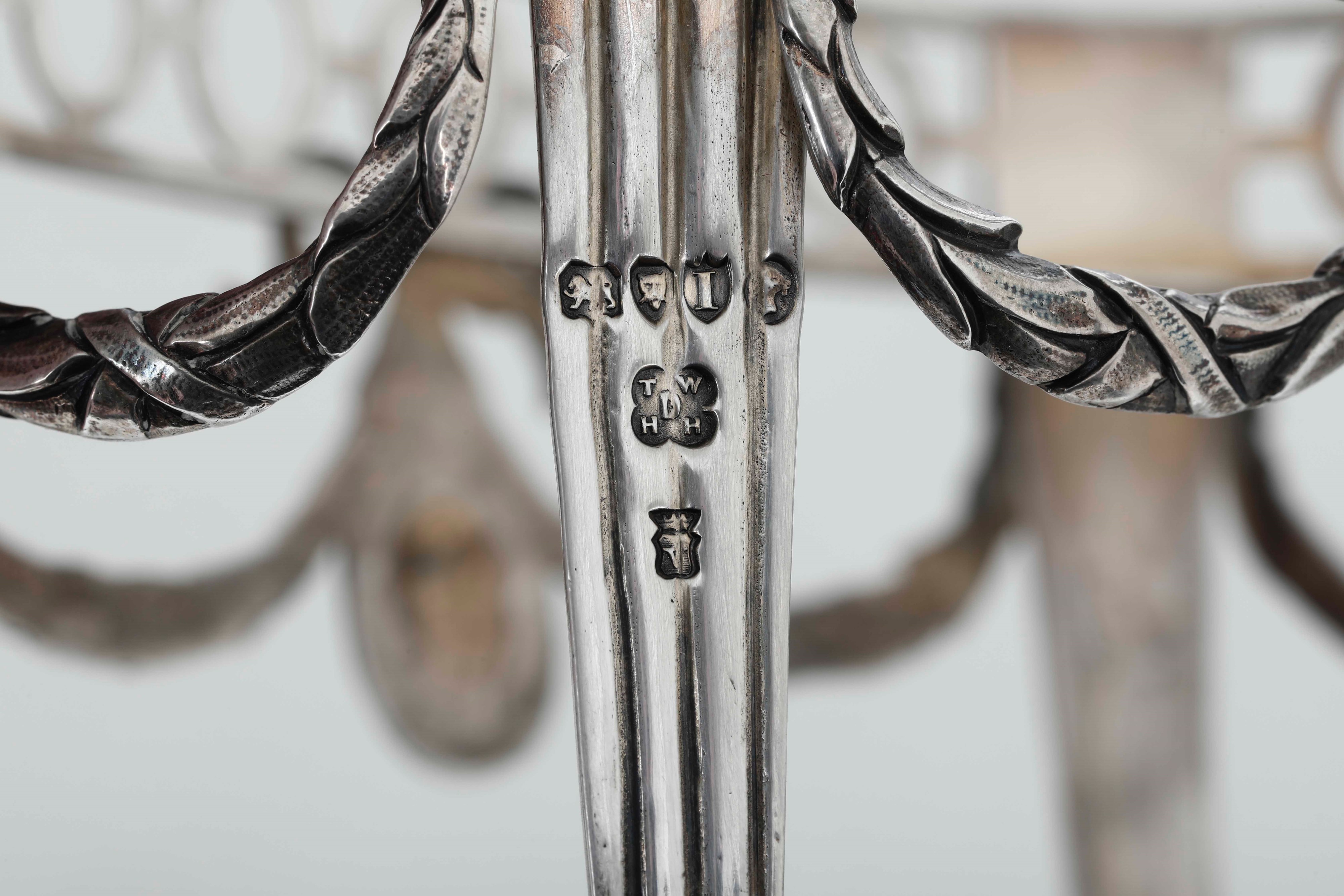 Coppia di alzate. Argento fuso, traforato, cesellato e vetro (non coevo). Londra 1884. Argentiere Dobson & Sons