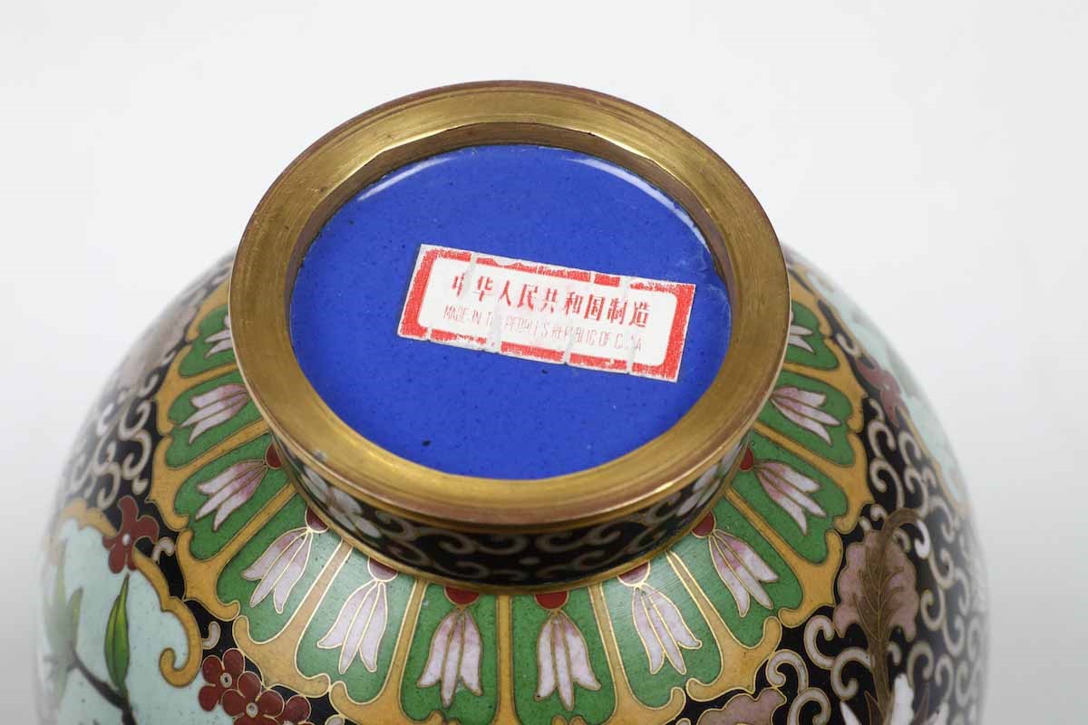 Coppia di vasi a bottiglia in smalti con decori floreali e scene naturalistiche entro riserve, Cina, Dinastia Qing, XIX secolo