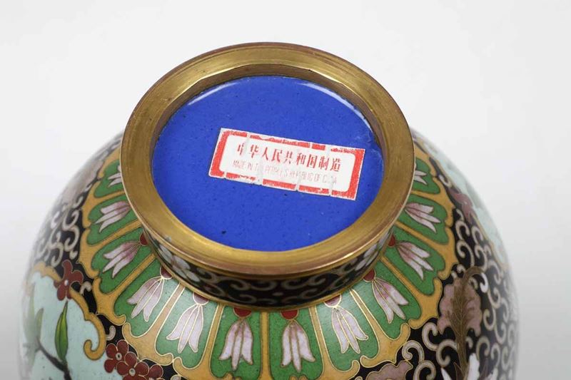 Coppia di vasi a bottiglia in smalti con decori floreali e scene naturalistiche entro riserve, Cina, Dinastia Qing, XIX [..]