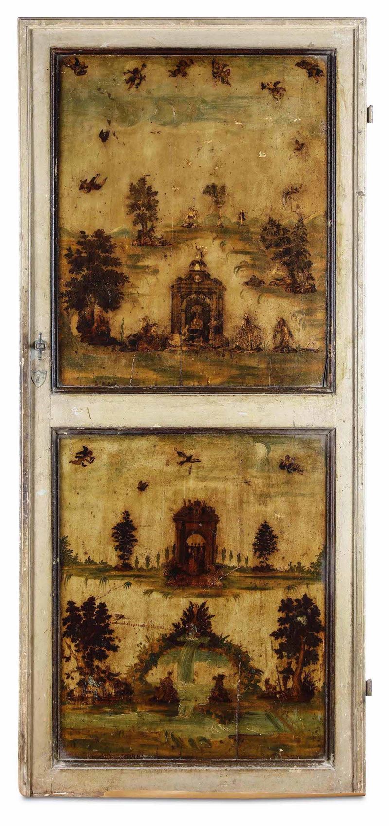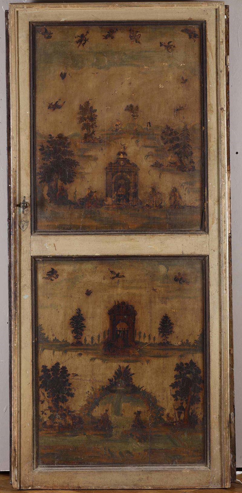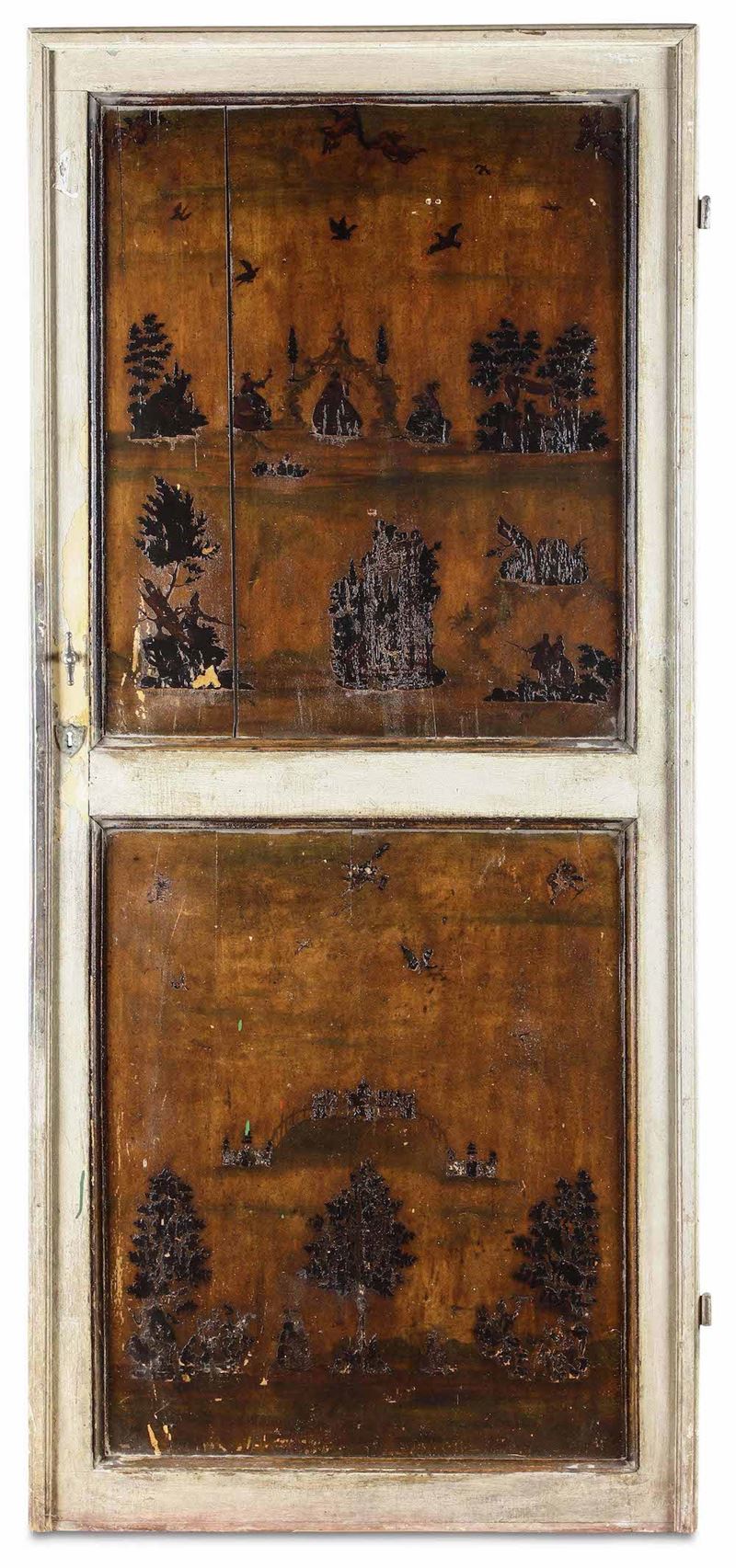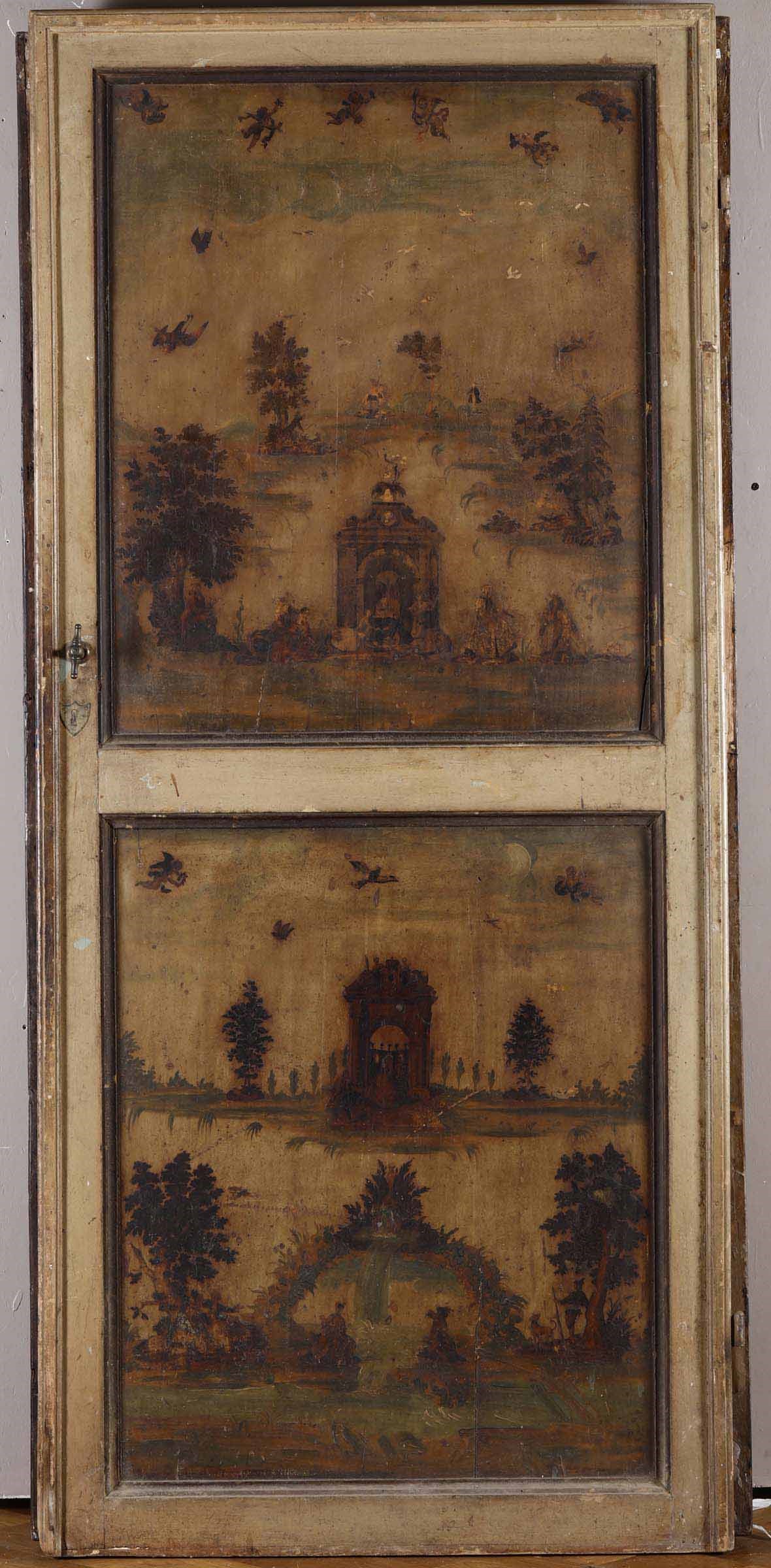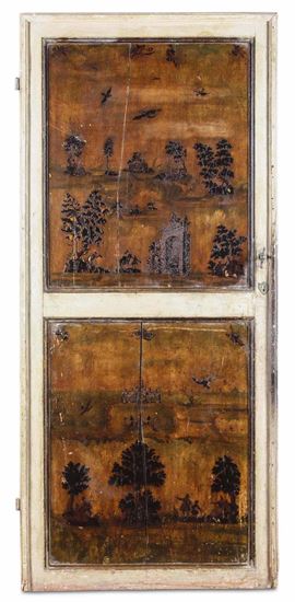 Quattro porte in legno laccato e dipinto ad arte povera, Veneto XVIII-XIX secolo