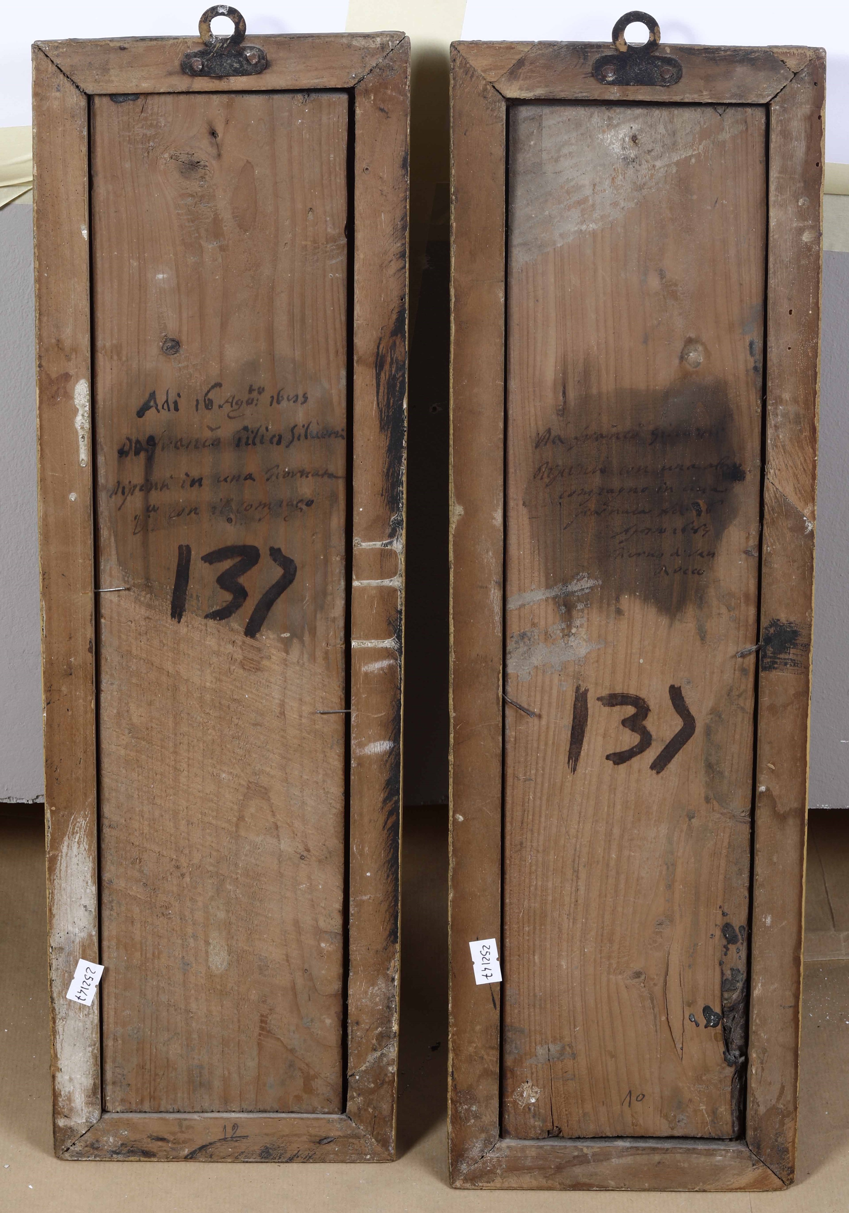 coppia di olio su tavola, inscritti e datati 1689 al retro