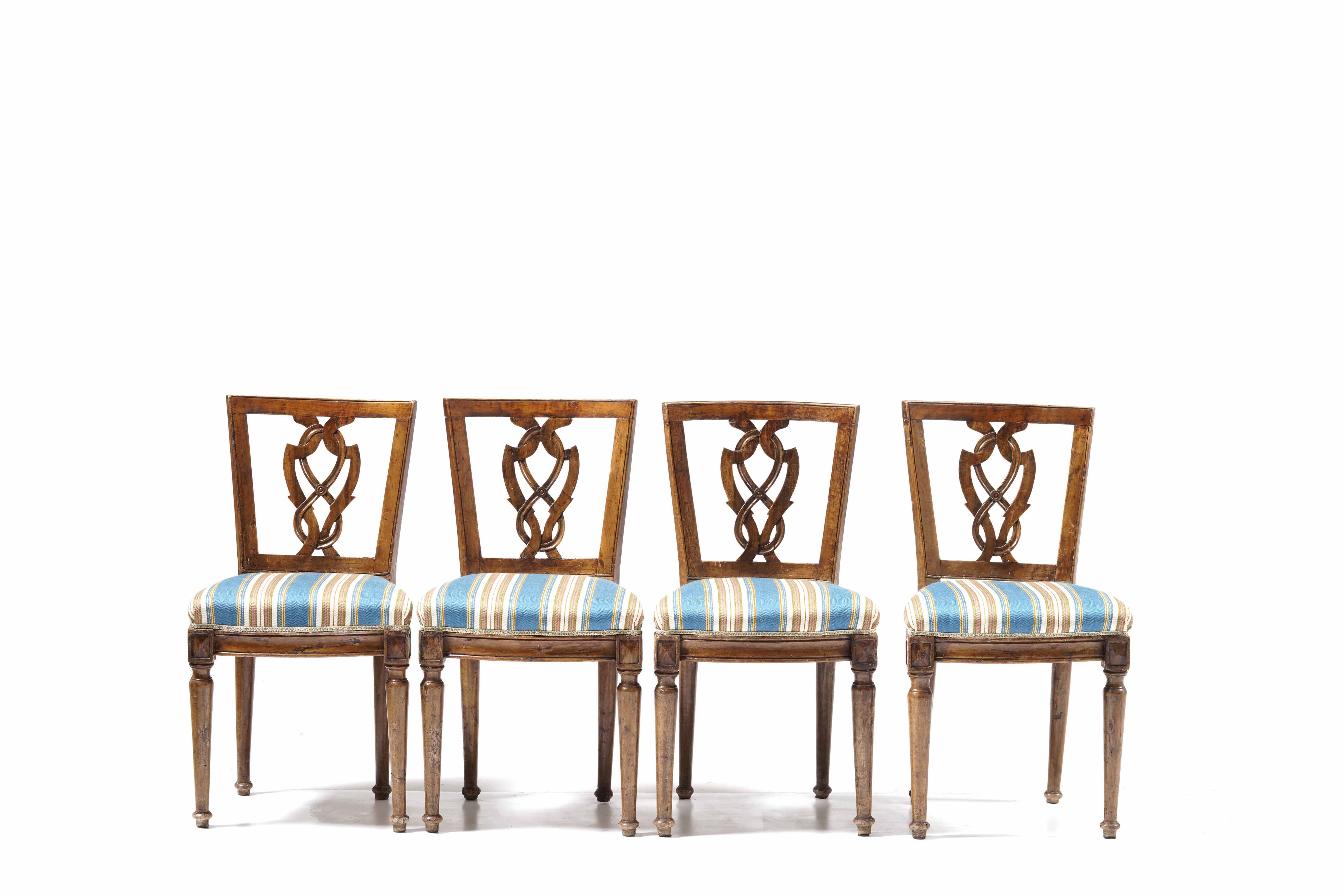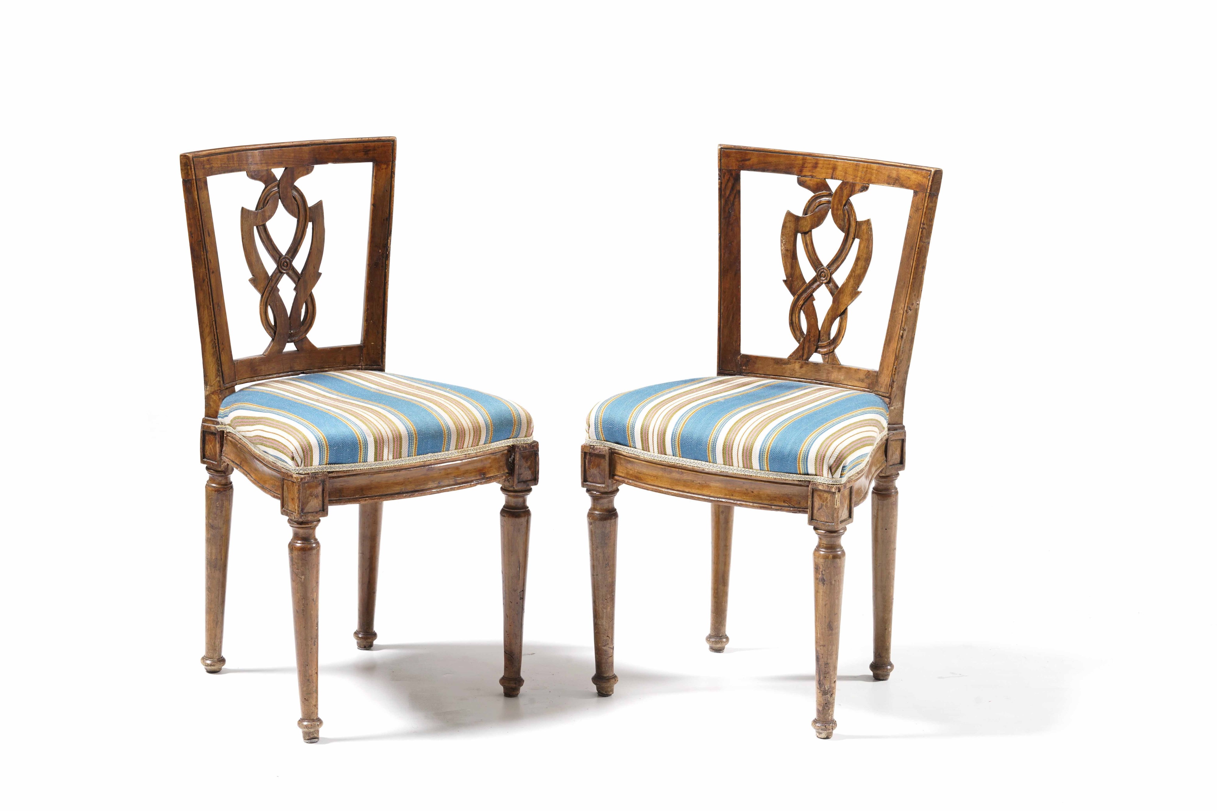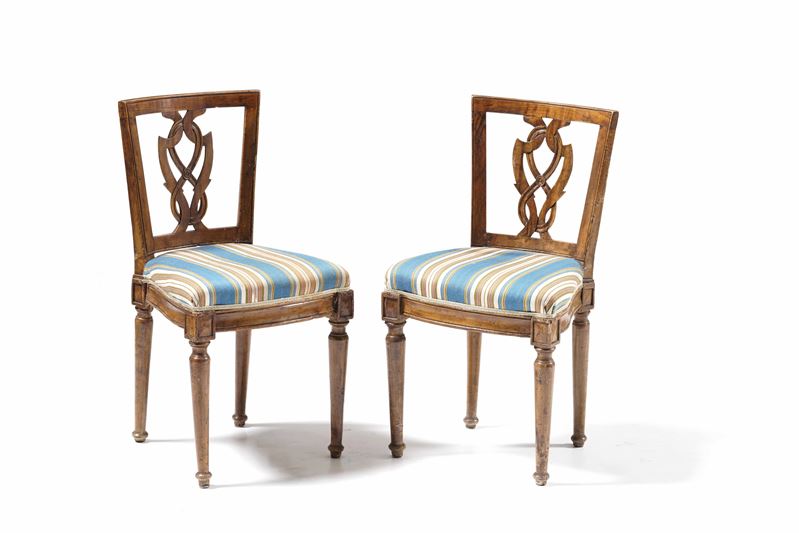 Sei sedie in legno intagliato. Fine XVIII secolo