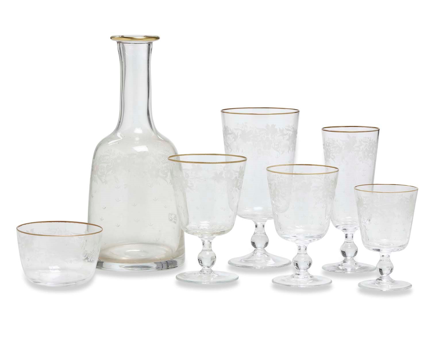 Servizio di calici con decorazioni floreali e bordo oro Murano, Manifattura Moretti, XX secolo