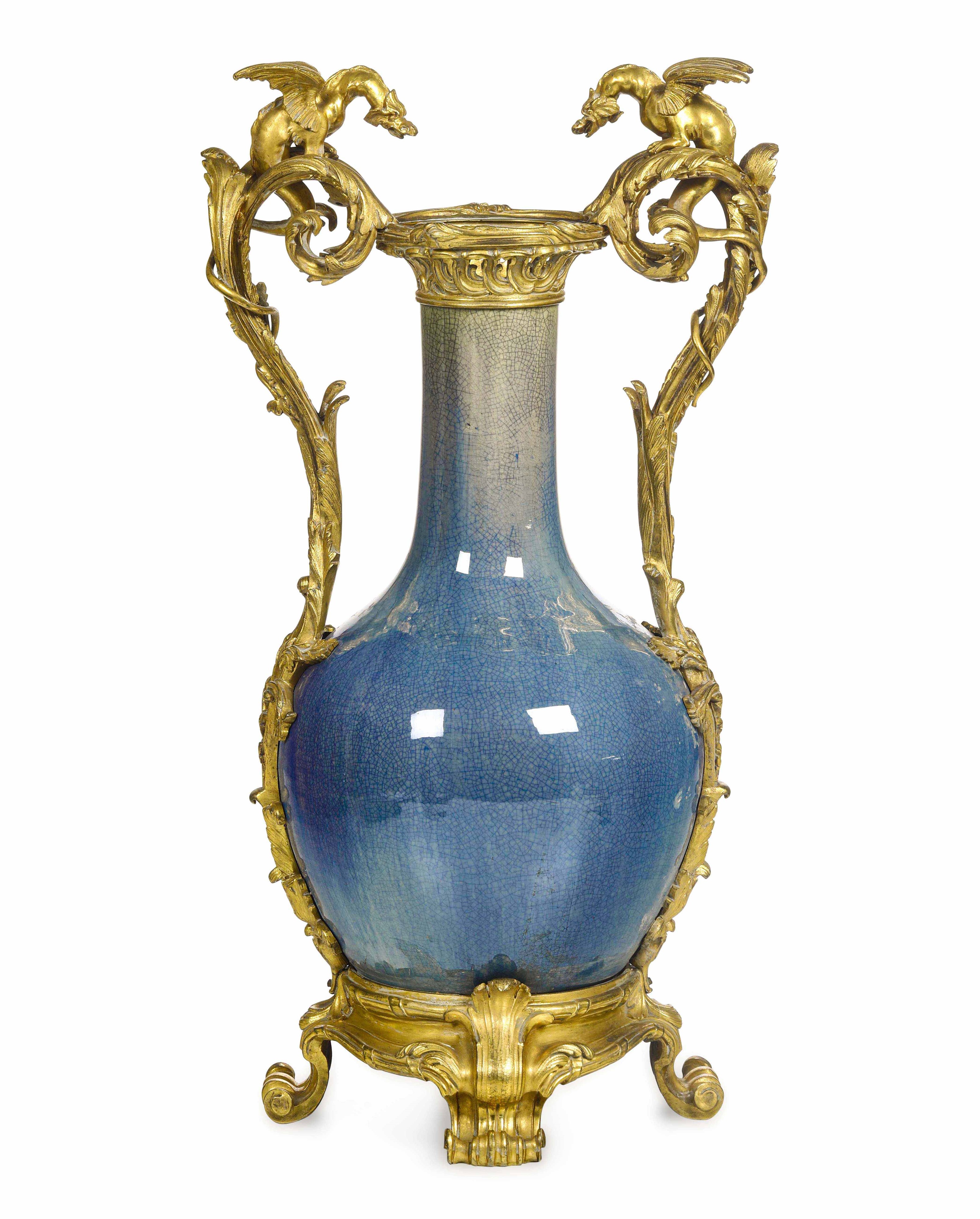Vaso a bottiglia in porcellana flambè sui toni dell'azzurro, Cina, Dinastia Qing, epoca Qianlong (1736-1796)