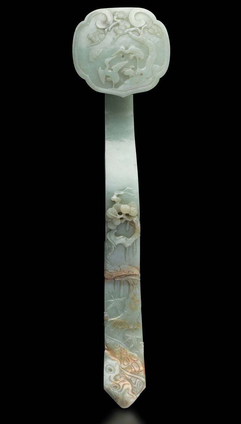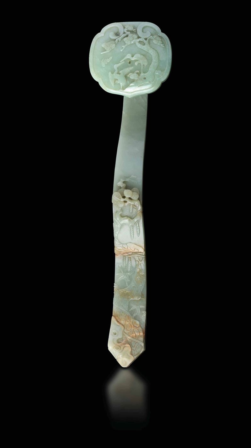 A carved jade and russet Ruyi, China, Qing Dynasty