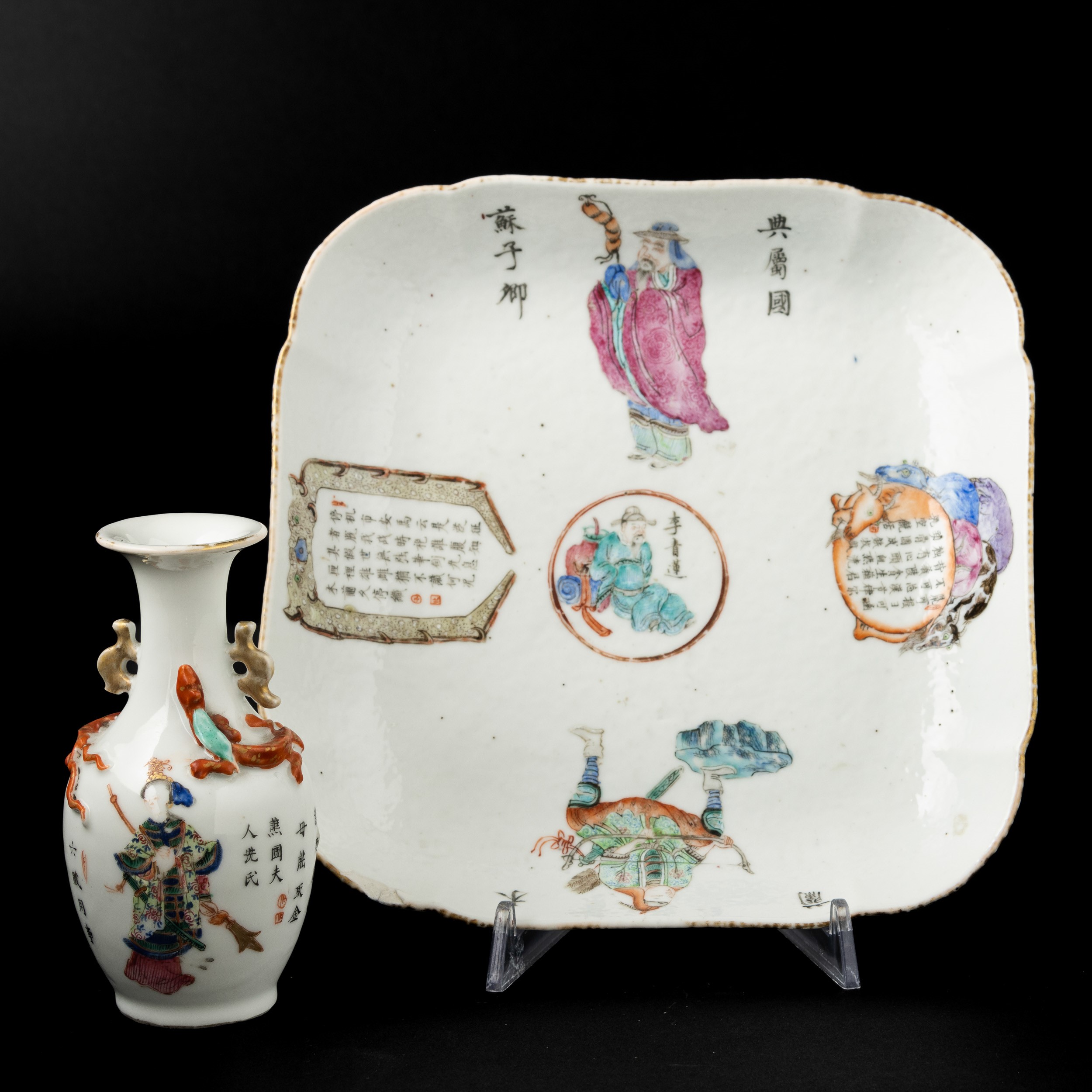 A porcelain plate and a vase, China, 1800s