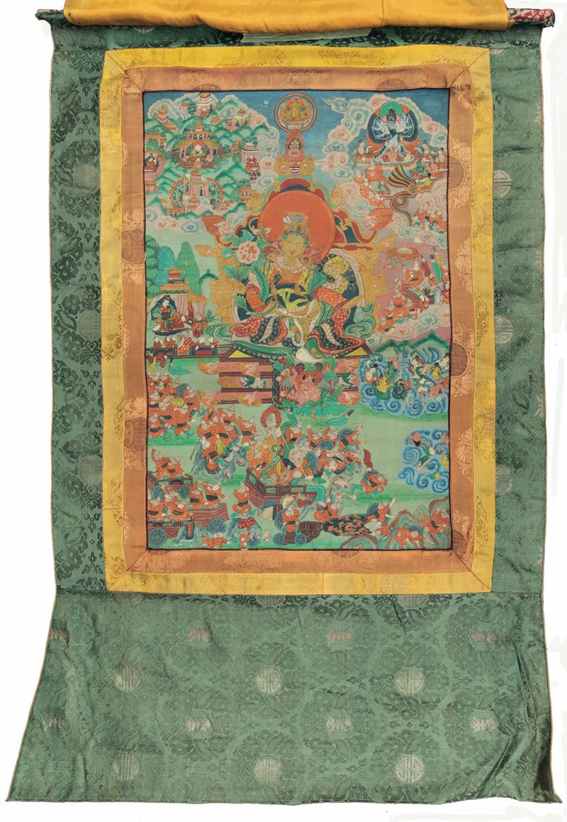 A silk thangka, Tibet, 1800s