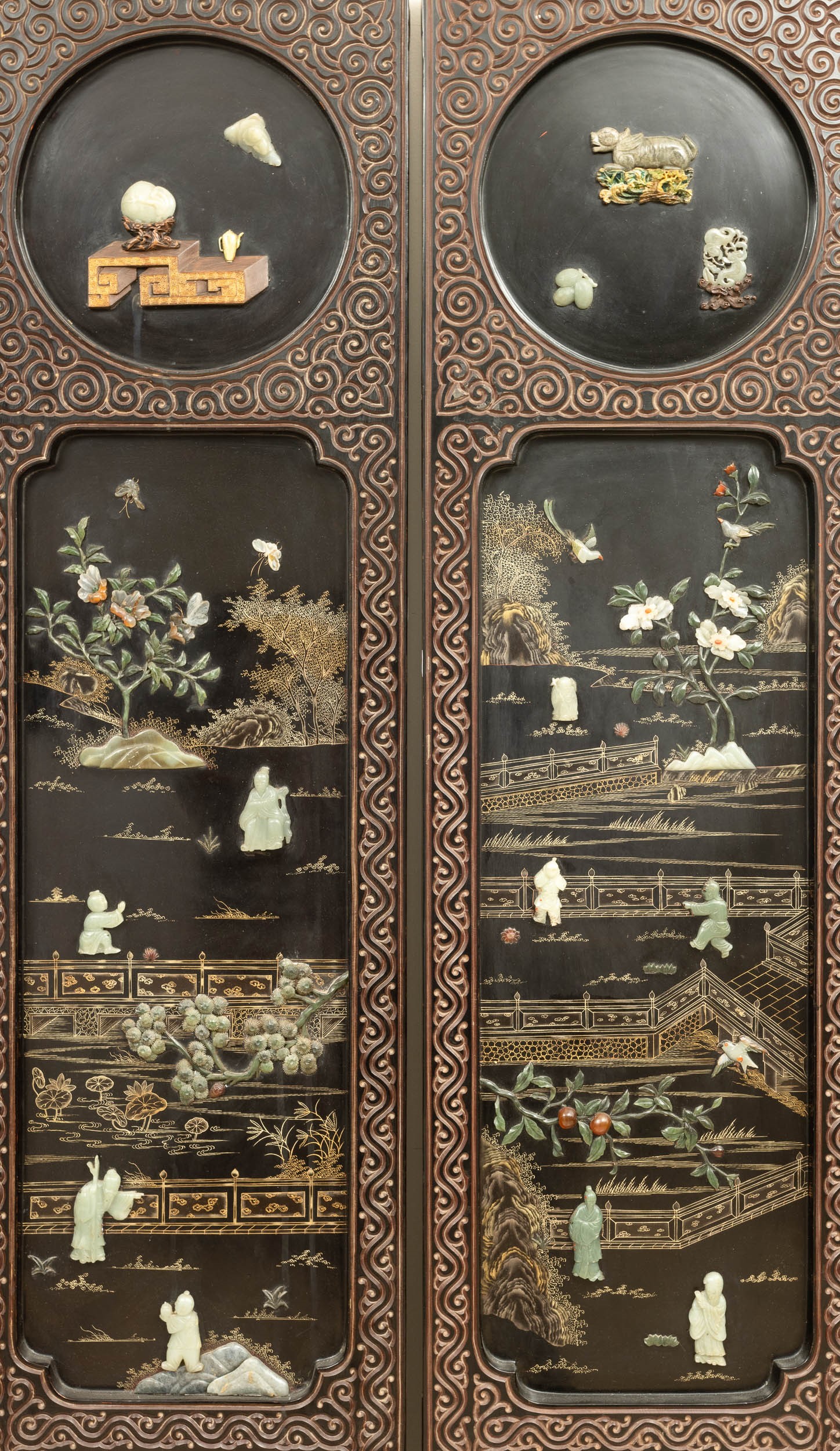 Qing Dynasty. With jade and semiprecious stone inlays