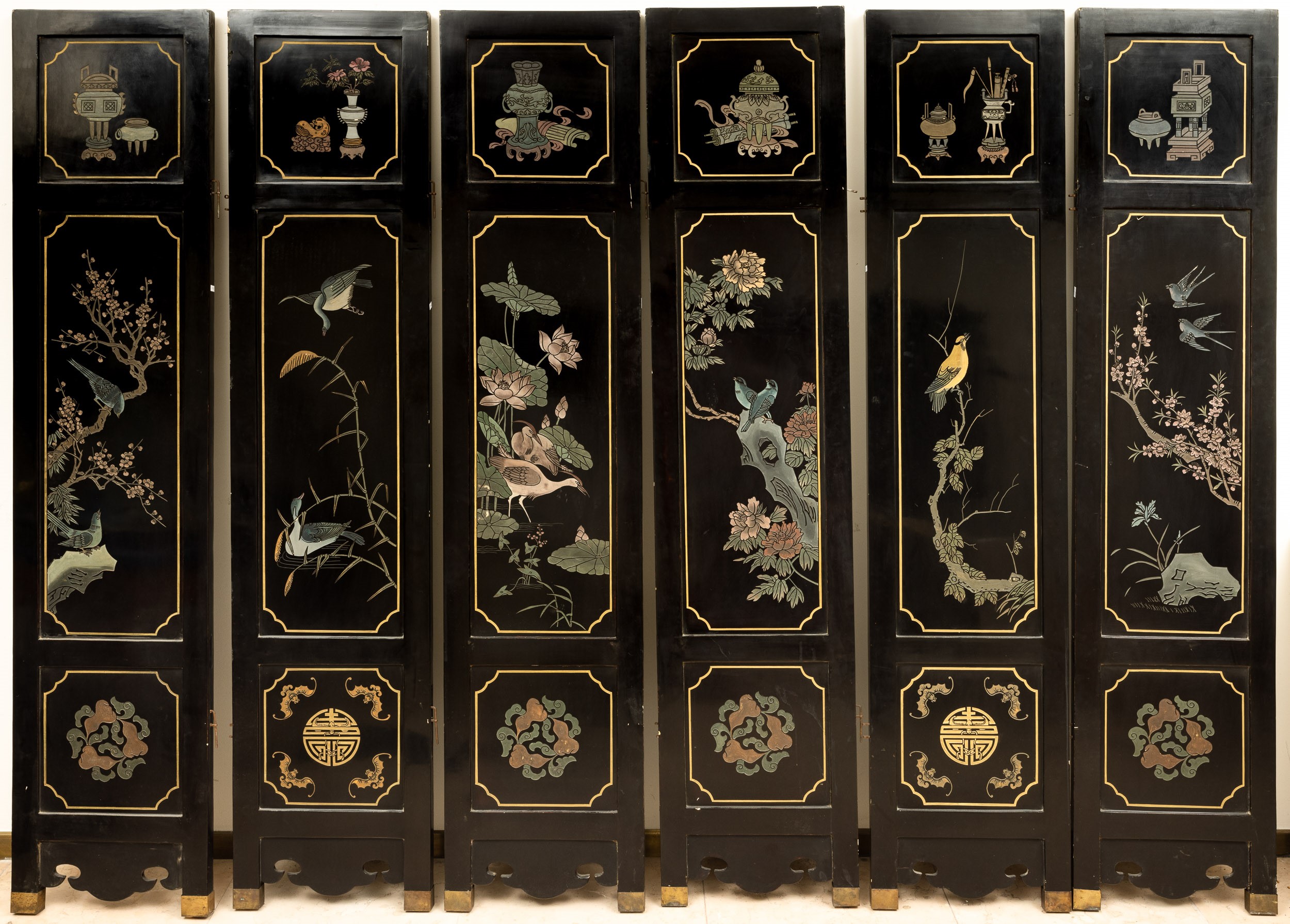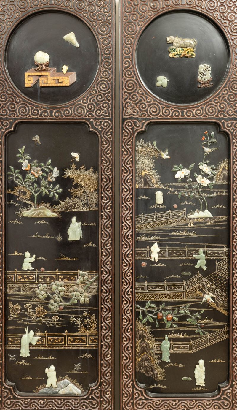 A six-fold lacquered wood screen, China, 1800s