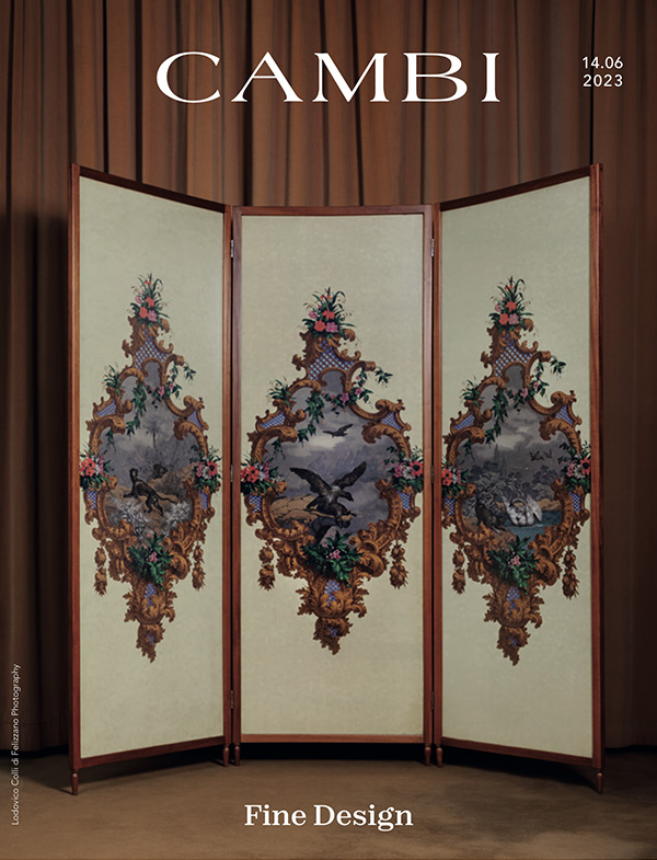 Struttura in legno a incorniciare tre pannelli in laminato con decoro serigrafato di gusto barocco raffigurante scene di caccia. Creato originariamente per un set di cinque pannelli per lo studio fotografico nella collina torinese dedicato alla fotografia [..]