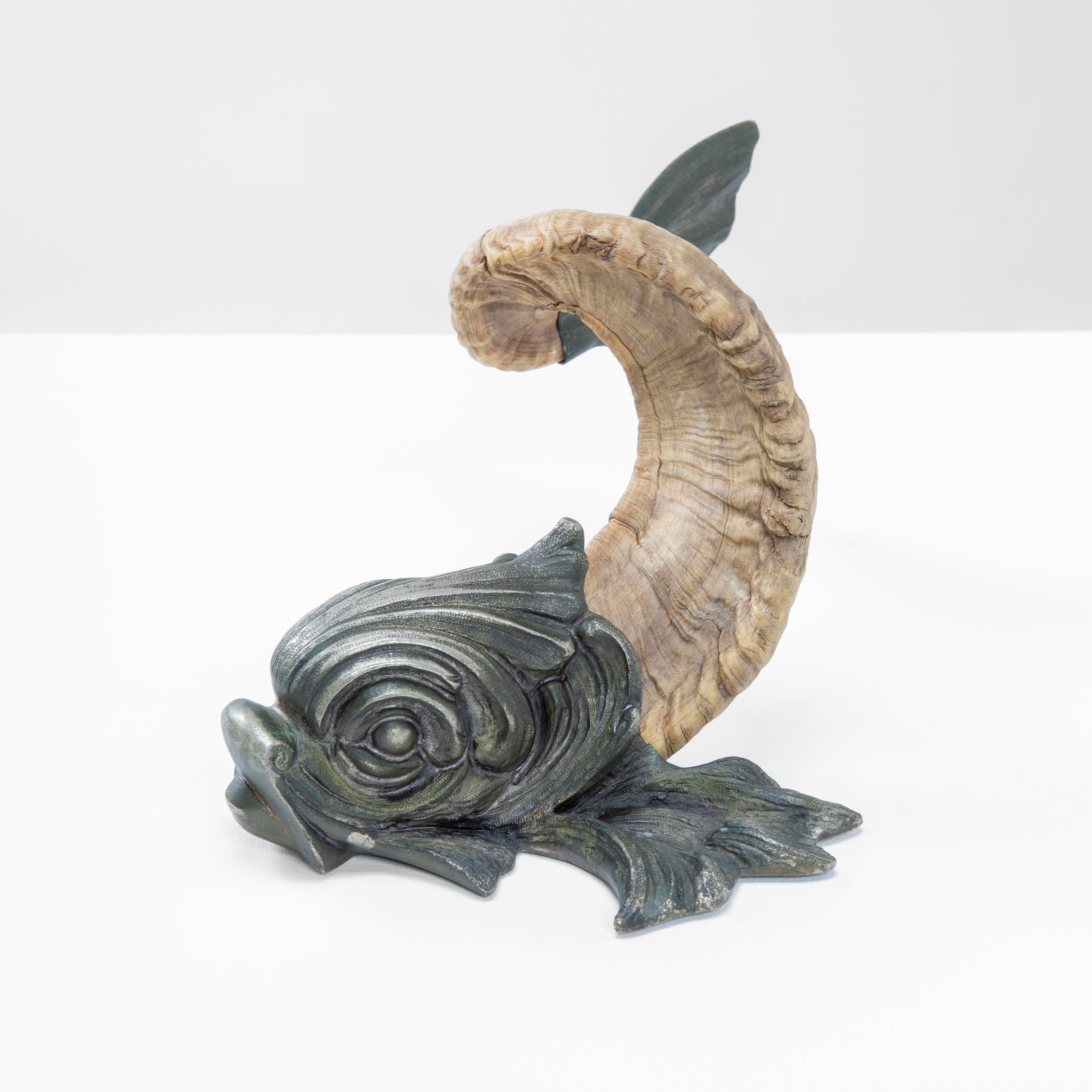 Struttura in metallo argentato con corpo in corno.