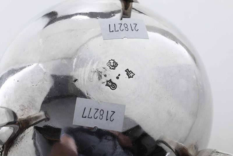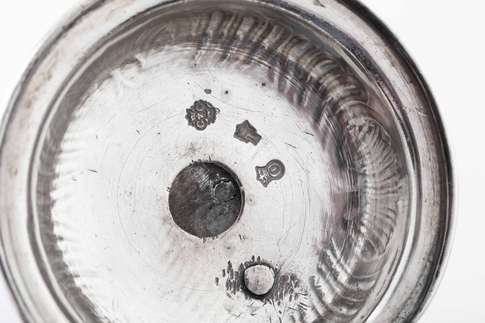 Silversmith's mark GG with a dog and a crown (unidentified). Molten, embossed and chiselled silver