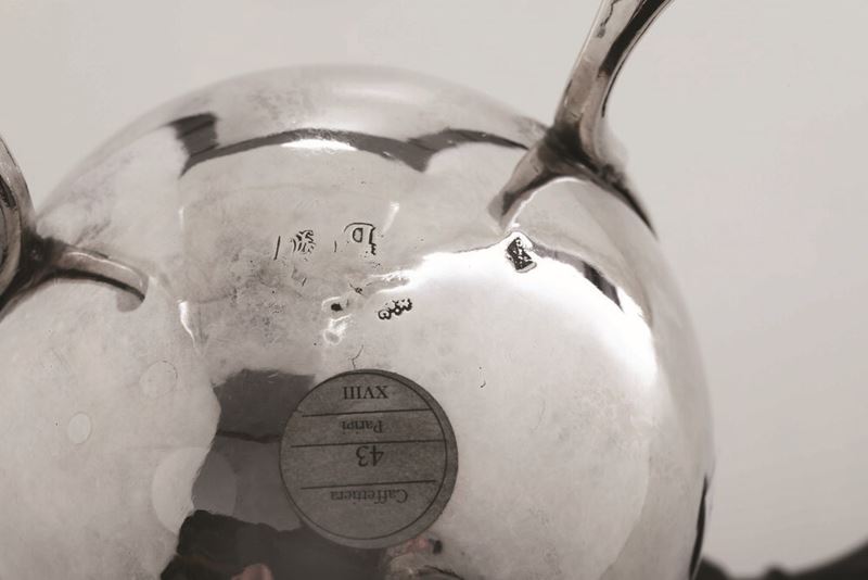 Silversmith's mark (partly readable). Monogram engraved on the upper part. Molten, embossed and chiselled silver