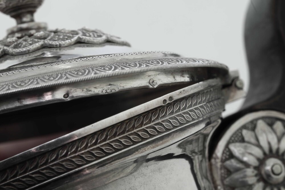 Assayer Giuseppe Vernoni, silversmith Stefano Arnaud. Molten, embossed and chiselled silver