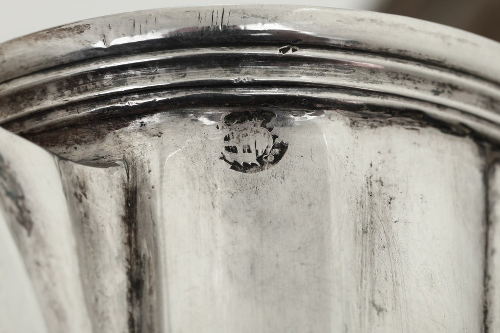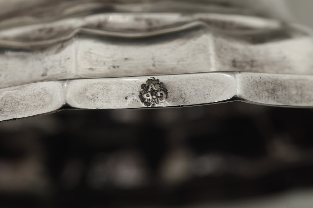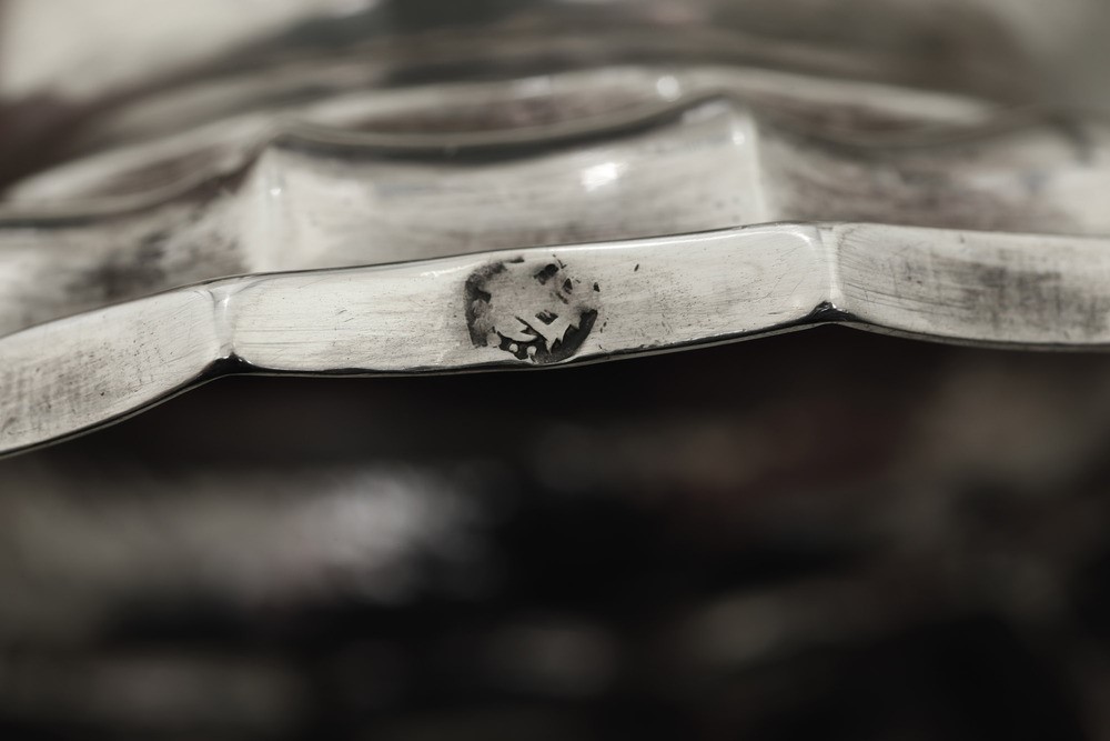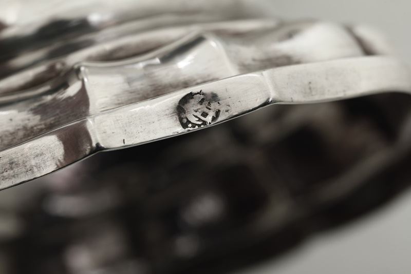 Silversmith's mark C B V within a leaf outline (documented but unidentified). Molten, embossed and chiselled silver
