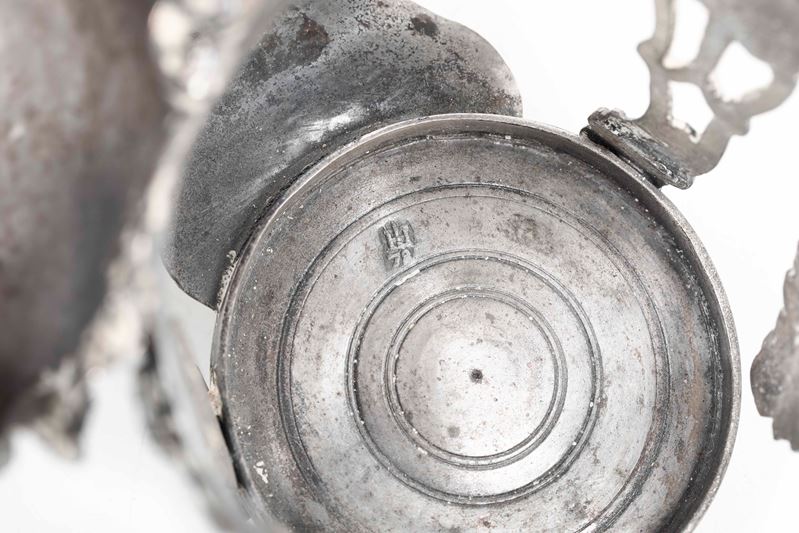 Molten, embossed, perforated and chiselled silver. "Torretta" mark dated (782)