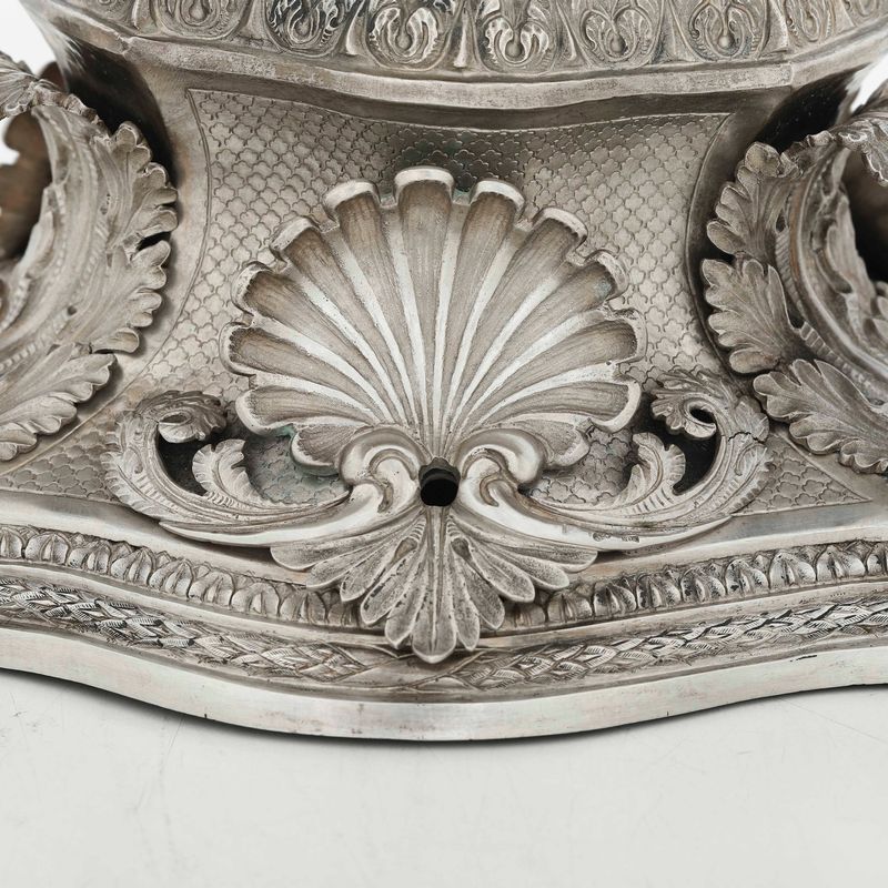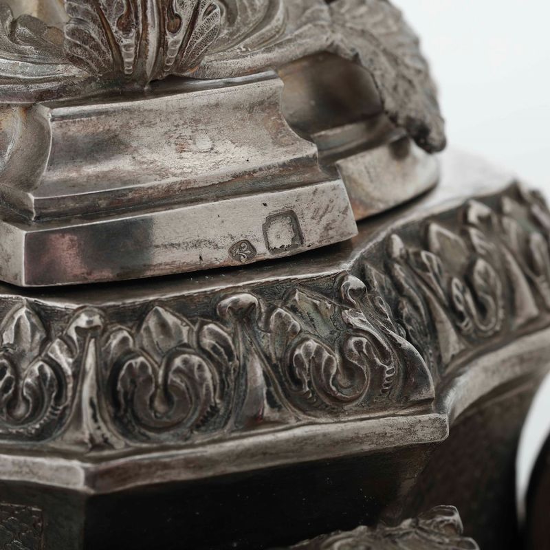 Marks in use from 1826 to 1872. Silversmith's mark GA with star (documented but unidentified). Molten, embossed and chiselled silver
