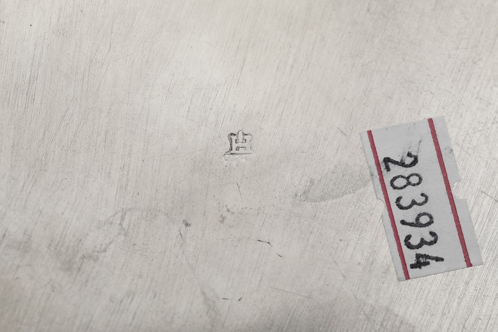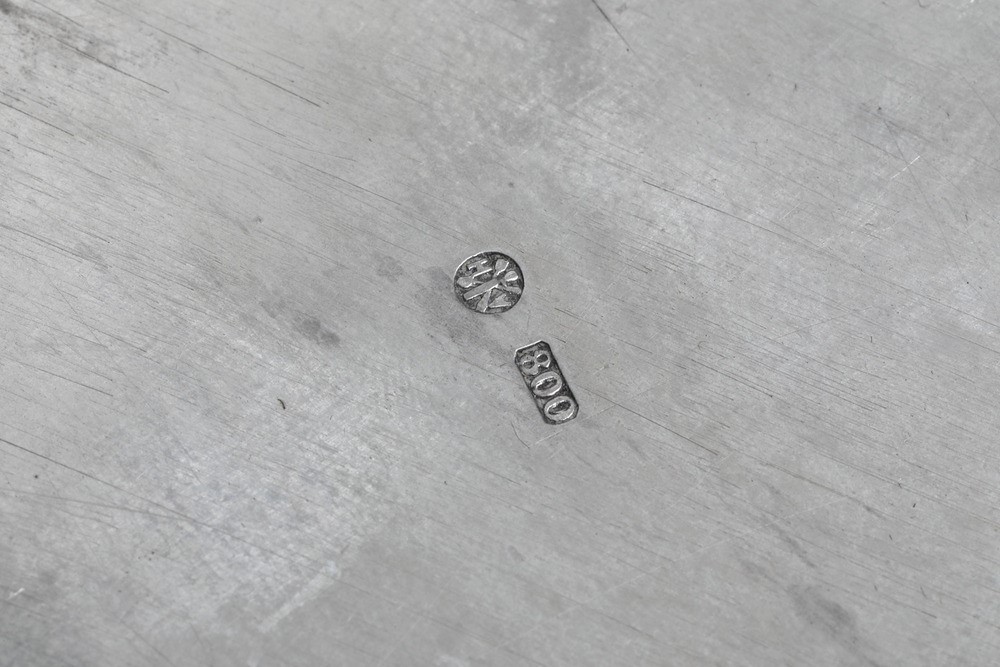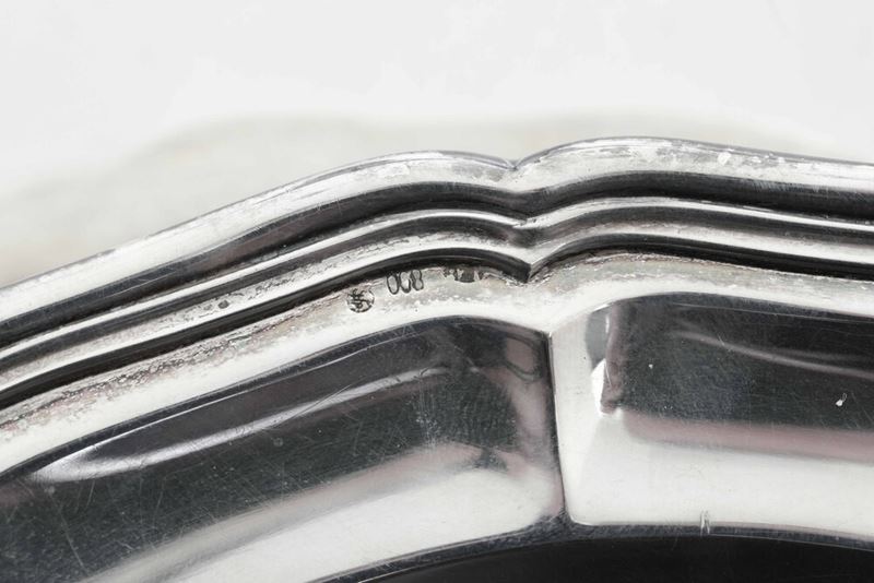 "Torretta" mark with unreadable date. Diam 22.5cm. Molten and moulded silver.