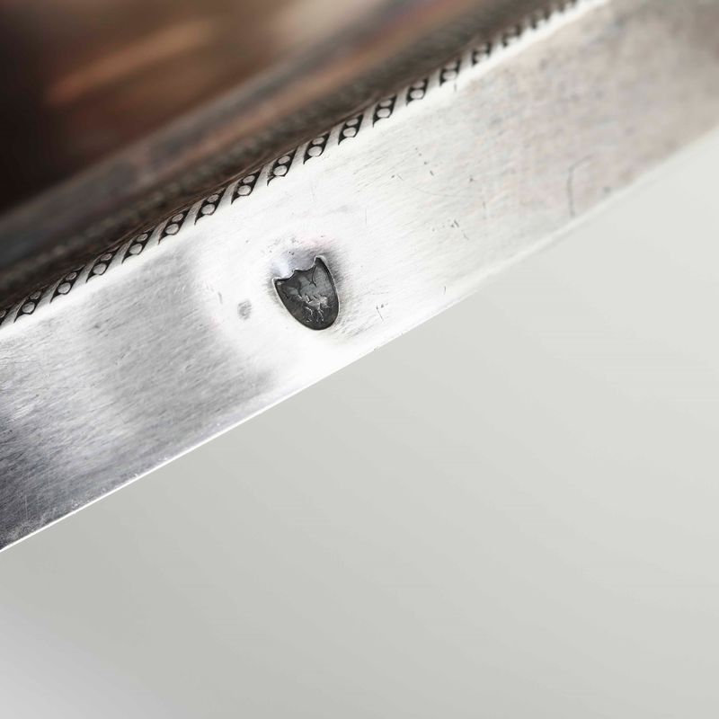 Title mark "Denari 11" in use from 1814 to 1824. Molten, embossed and chiselled sterling silver