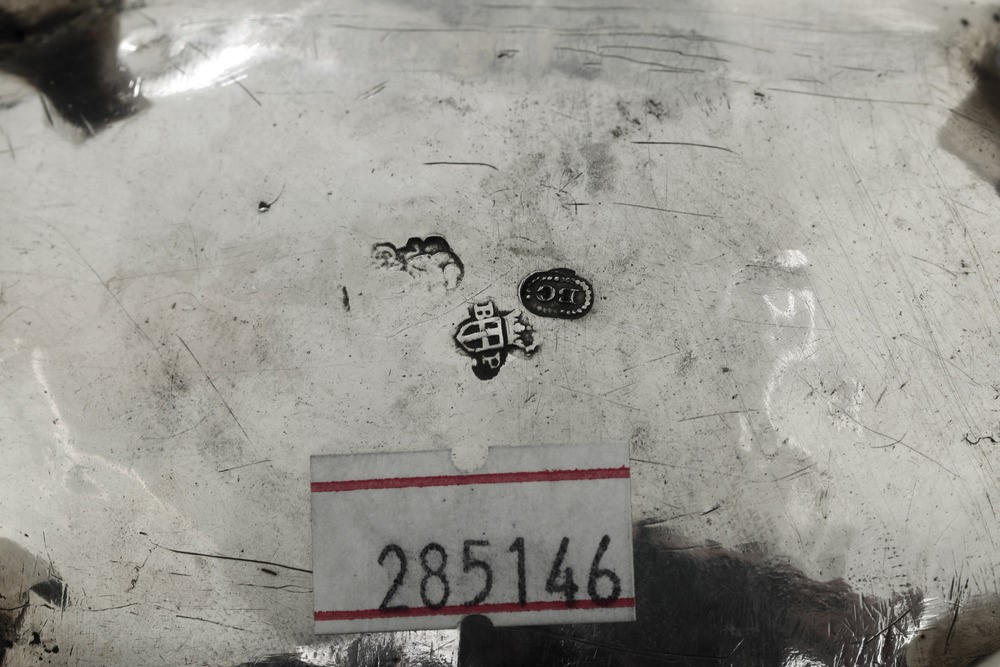 Assayer Bartolomeo Pagliani (1753-1775). Counter-assayer Giovan Battista Carron (1753-1778). Unreadable silversmith's mark. Molten, embossed and chiselled silver