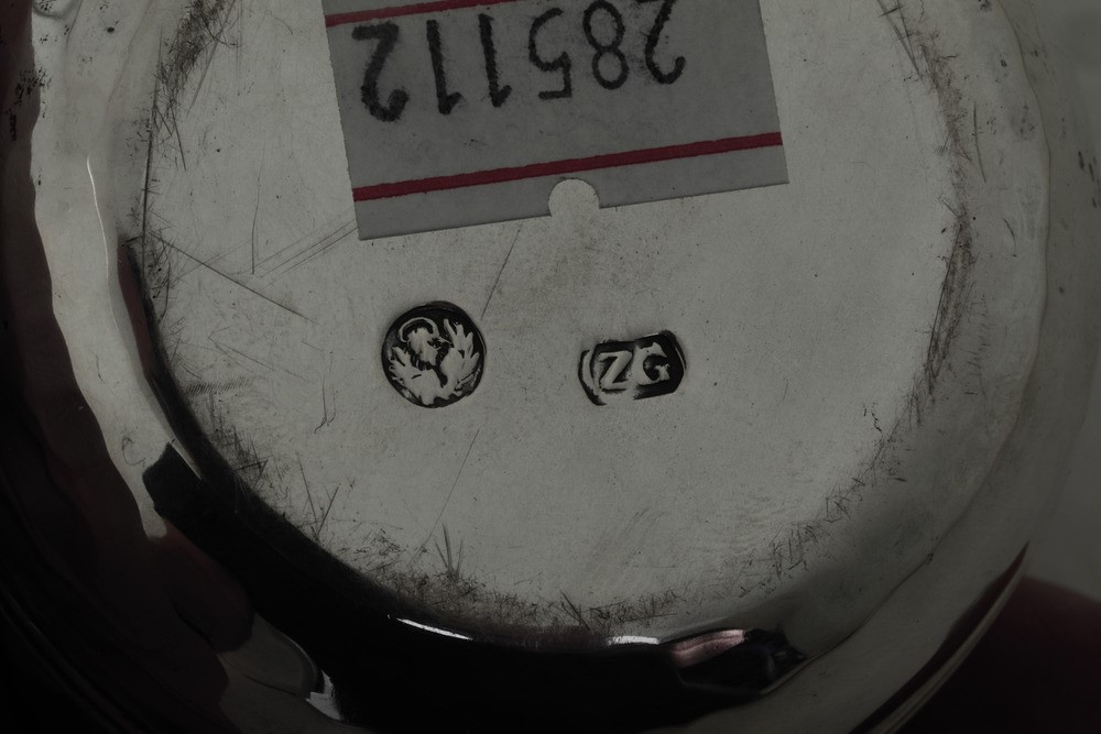 Silversmith's mark Z G. Molten, embossed and chiselled silver