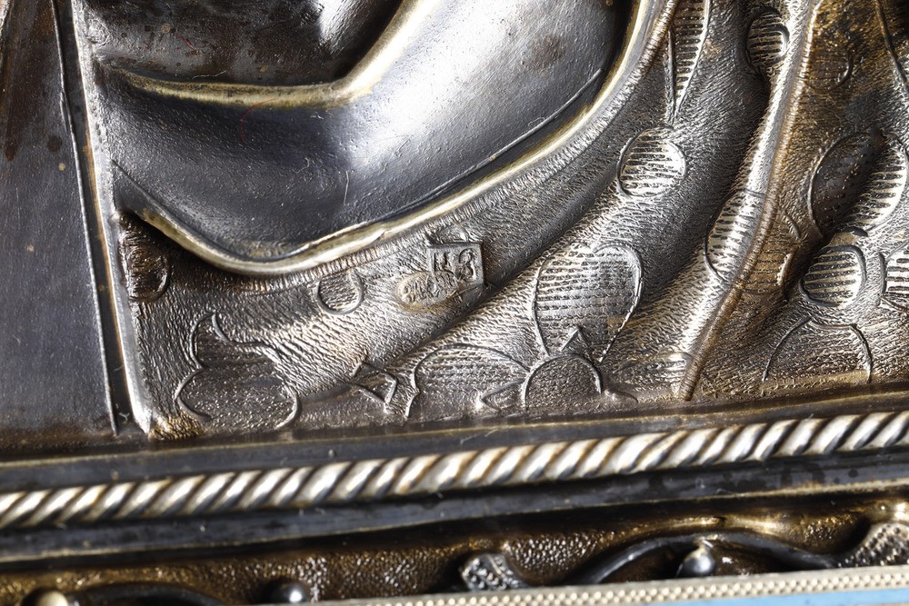 18/1900s. Molten, embossed, chiselled and gilt silver and polychrome cloisonné enamels