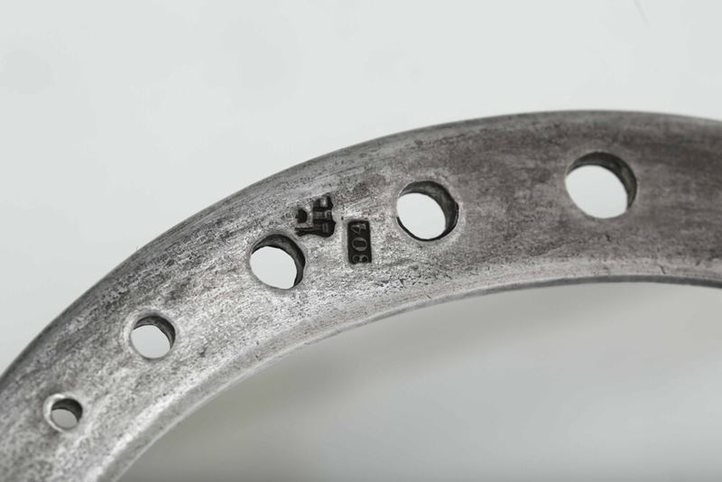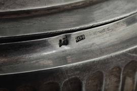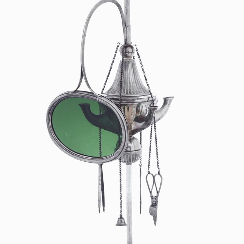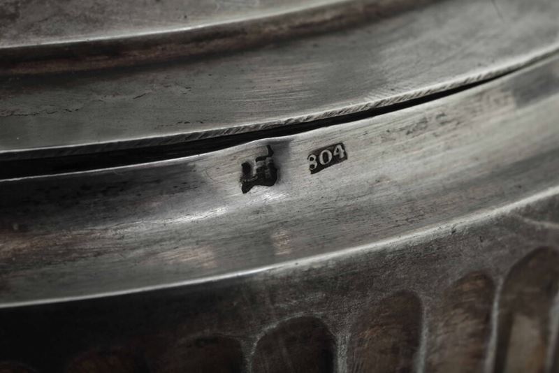 "Torretta" mark dated (1)804. Molten, embossed and perforated silver and coloured glass