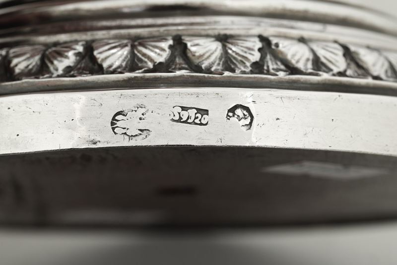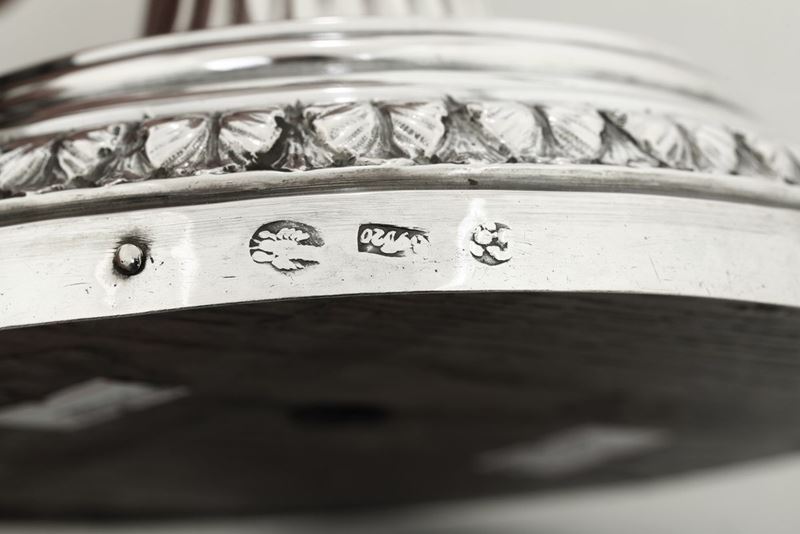 Silversmith Bonaventura Gambari (1743-1781). Molten, embossed and chiselled silver. Wooden base