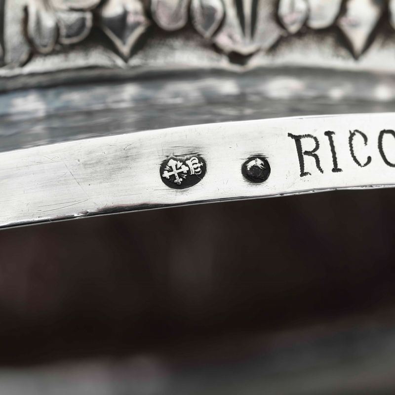 "Torretta" mark dated (1)819 and marks with Mauritian cross and dolphin. Molten, embossed and chiselled silver