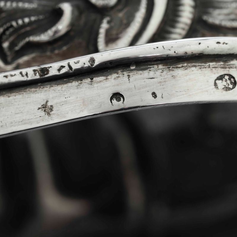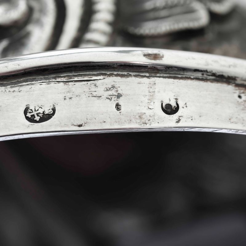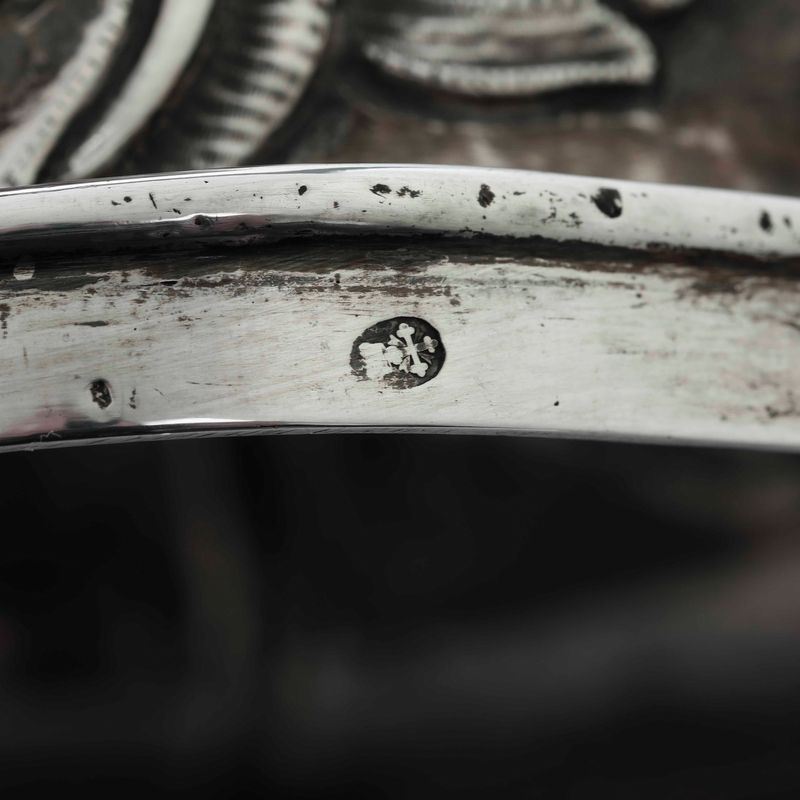 Mark with Mauritian cross and dolphin in use from 1824 to 1872. Molten, embossed and chiselled silver