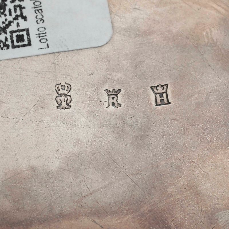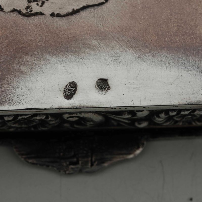 Larger box: H 6.5cm, W 10.5cm, D 7cm. Molten and chiselled silver
