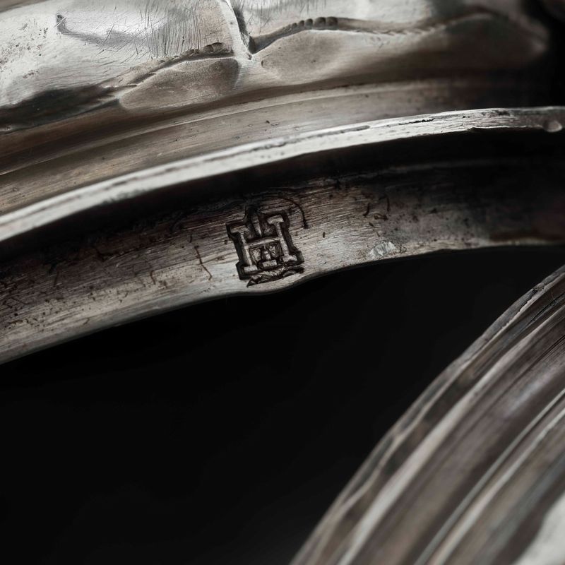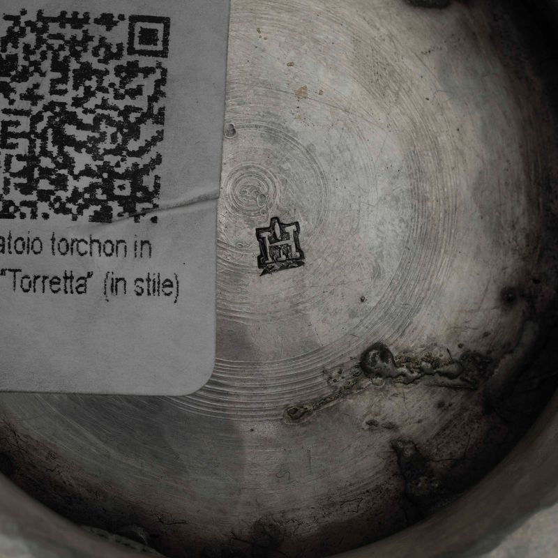 "Torretta" mark, not relevant. Molten and embossed silver, carved wooden handle