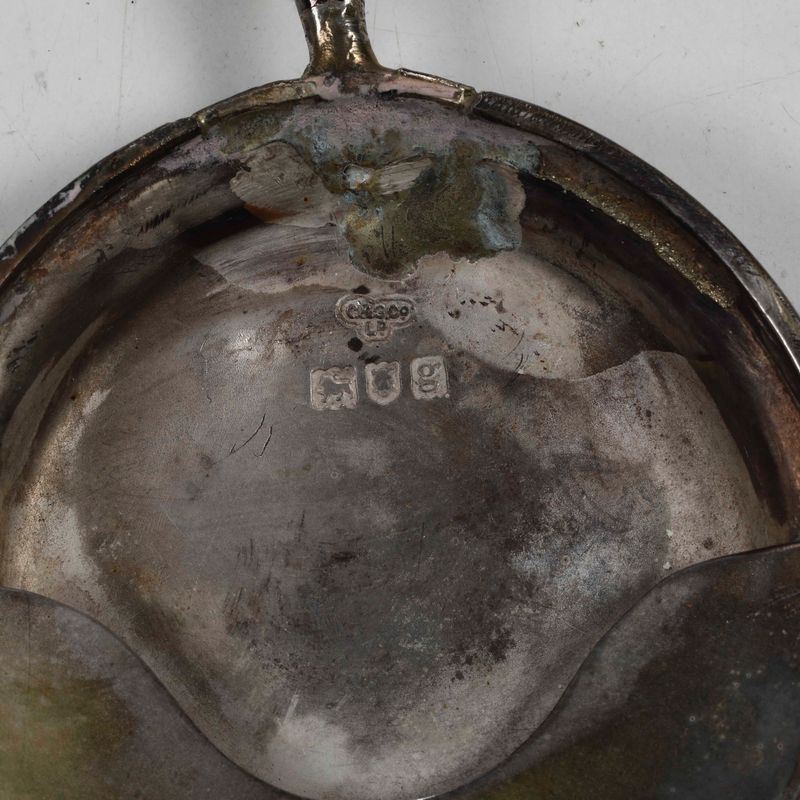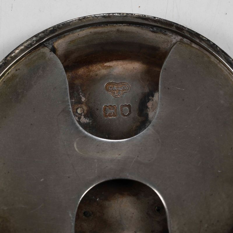 Unidentified silversmith's mark. Molten, embossed and chiselled silver. Turned wood handle