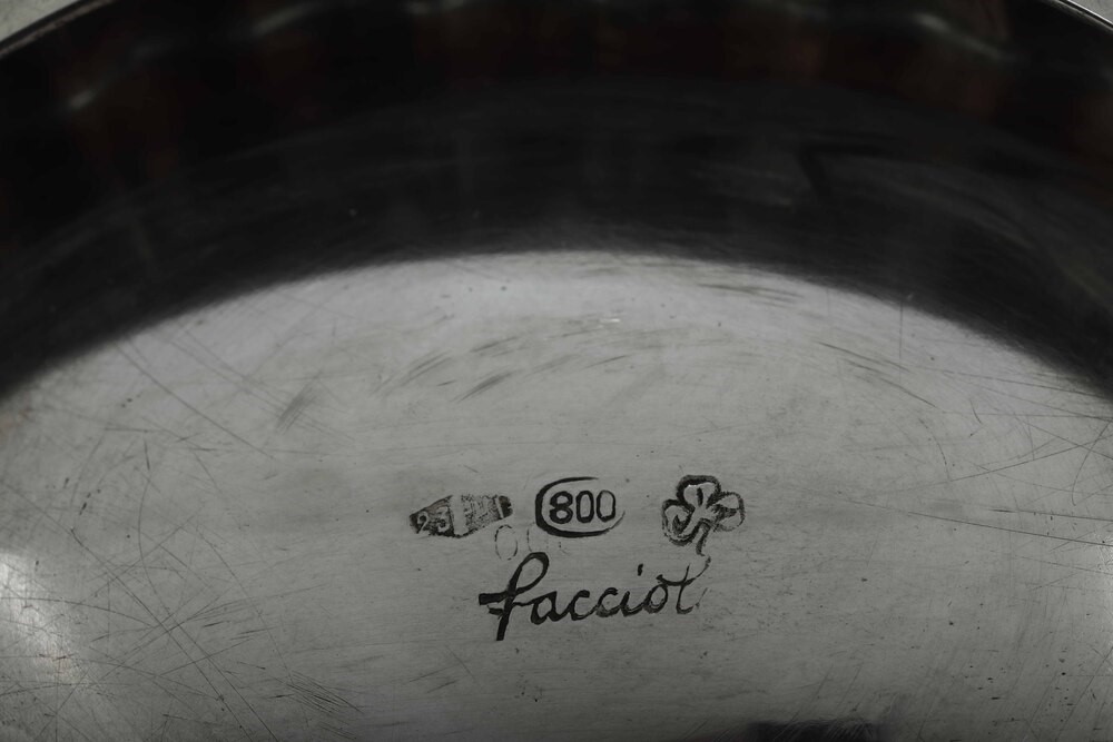 Marks with fasces in use from 1935 to 1945. Silversmith Luigi Genazzi for Faccioli. Molten and moulded silver, ebony handles