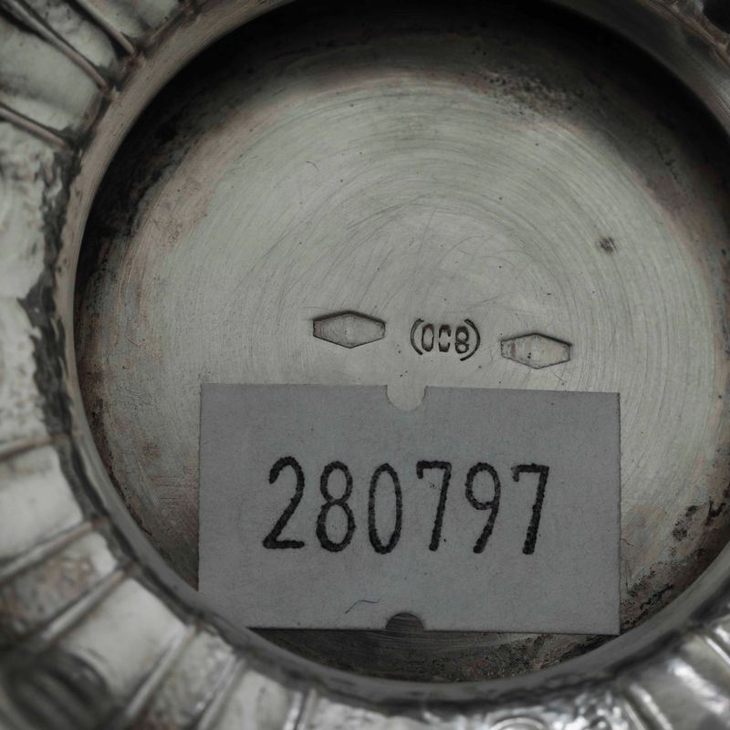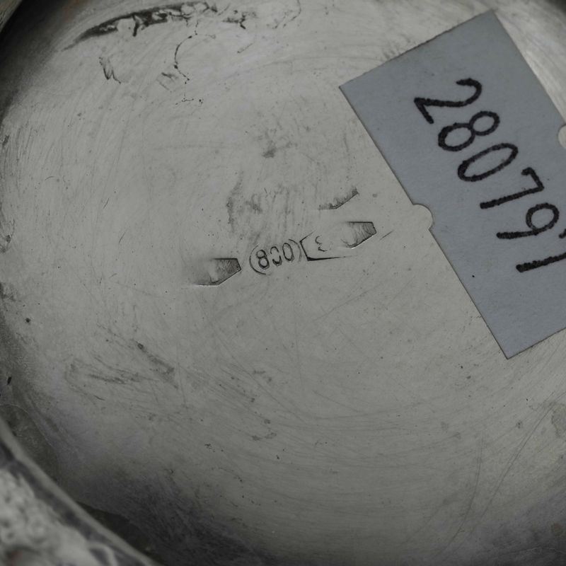 Marks with fasces in use from 1935 to 1945. Silversmith Achille Proserpio. Molten, moulded and chiselled silver, wood, and mirrored glass