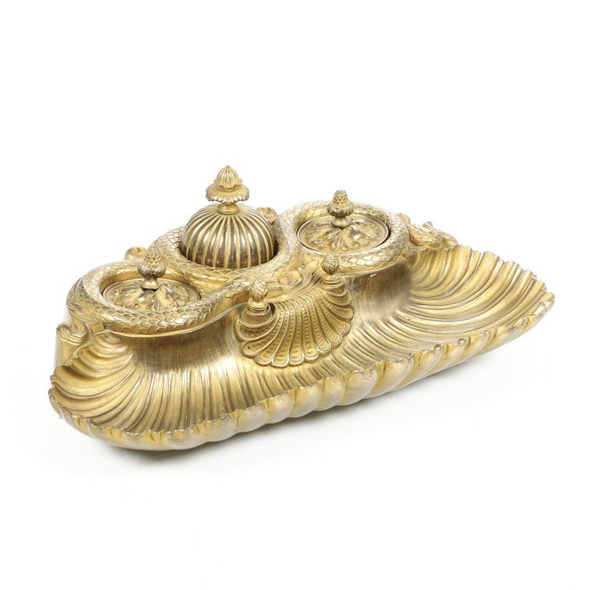 Calamaio in bronzo dorato. Fonditore del XIX secolo