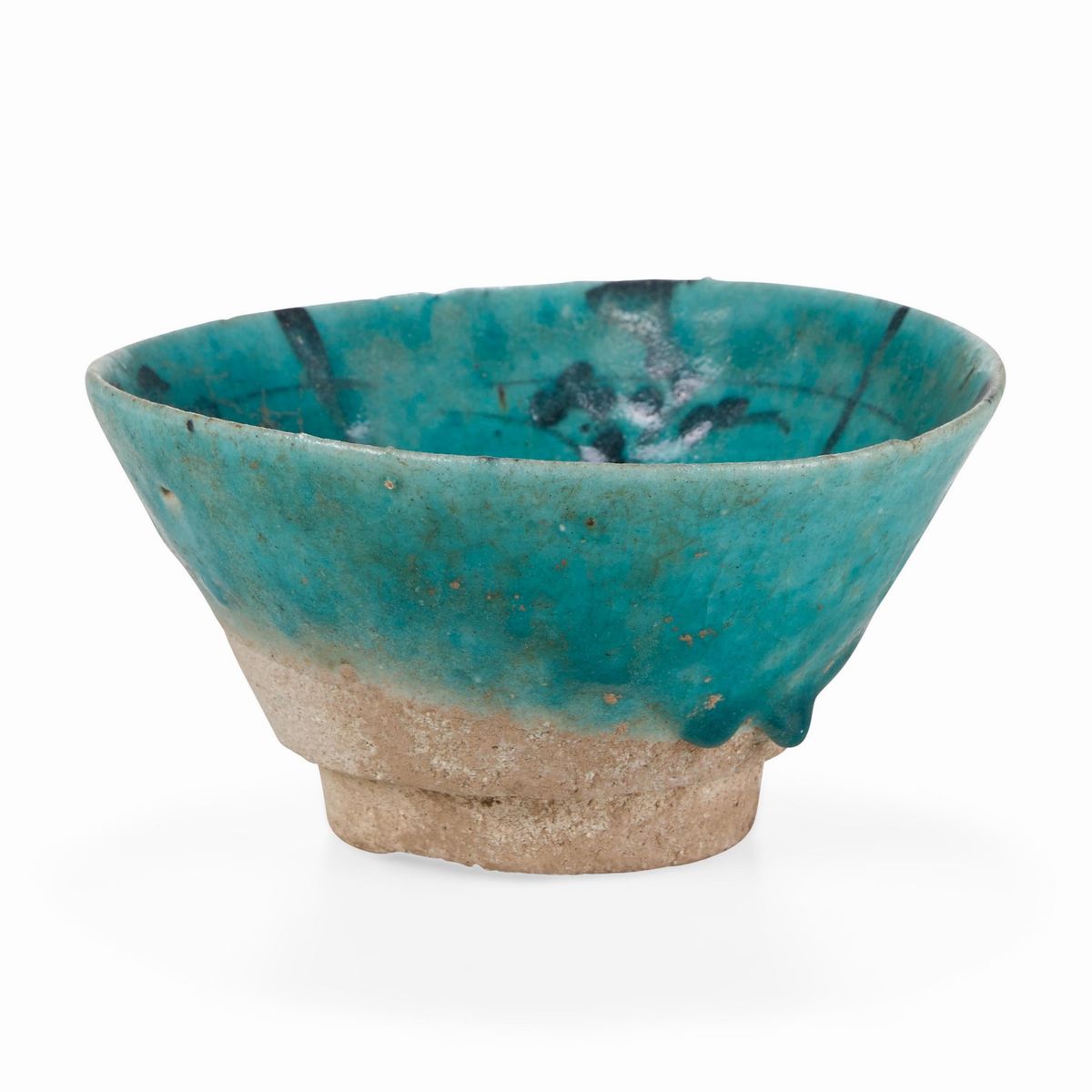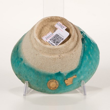 Ceramica artificiale (“fritta”). Dimensioni: altezza cm 8,4; diametro cm 16 circa. Conservazione: ottima. Provenienza: collezione Luigi Laura, Ospedaletti, come da etichetta cartacea