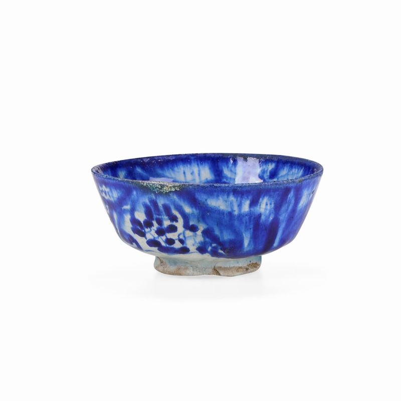 Ceramica invetriata decorata in blu di cobalto. Dimensioni: altezza cm 5,8; diametro cm 13. Conservazione: ottima. Provenienza: Antiquari S.Giusti / U.Podestà, Milano