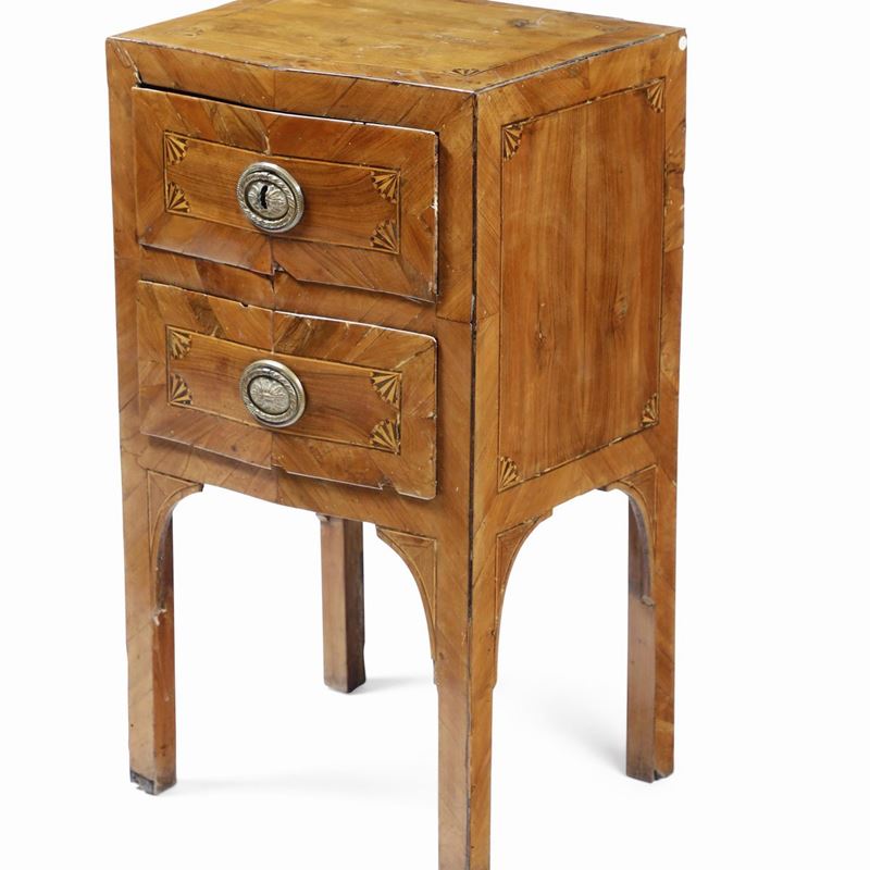 Coppia di comodini lastronati e filettati. XVIII-XIX secolo